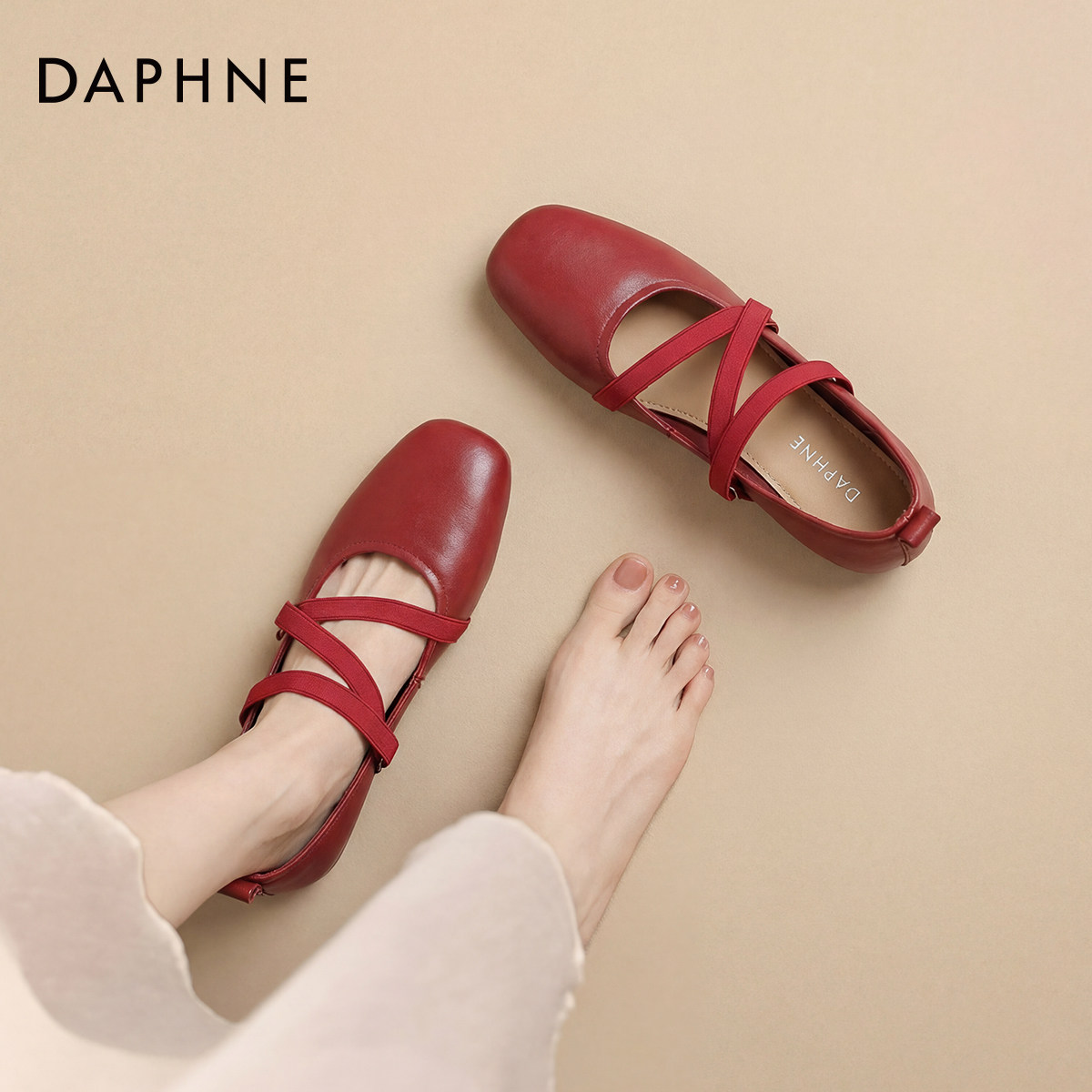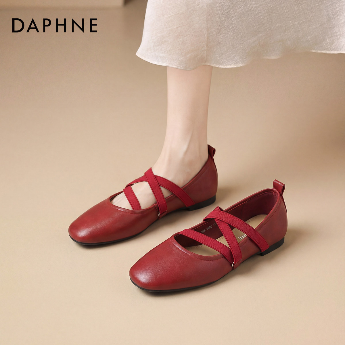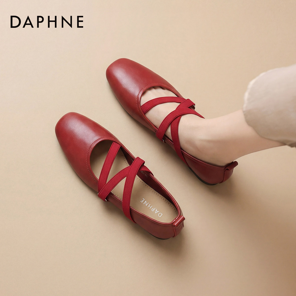 达芙妮红色平底单鞋女款2026新款春夏季芭蕾玛丽珍女鞋婚鞋新娘鞋