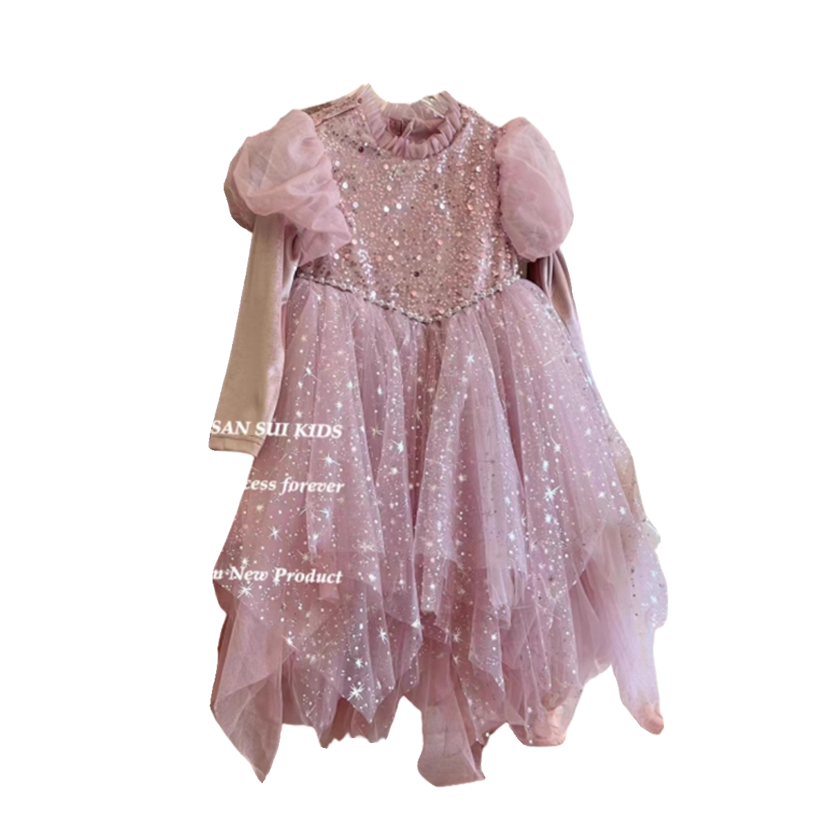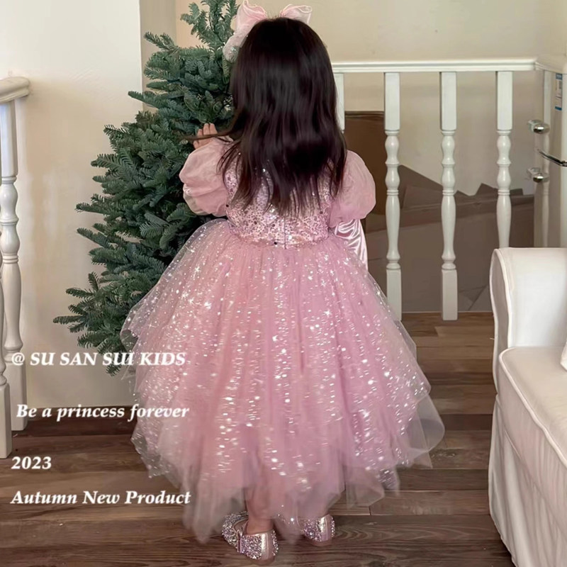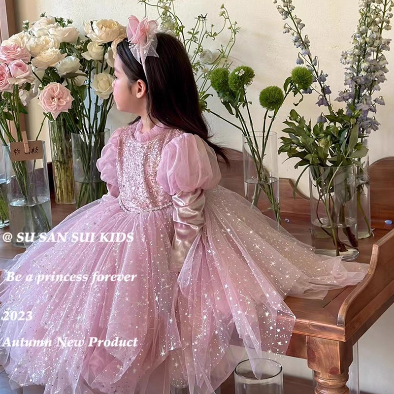 女童公主裙秋冬2023新款泡泡袖高端梦幻星星生日礼服儿童连衣裙子