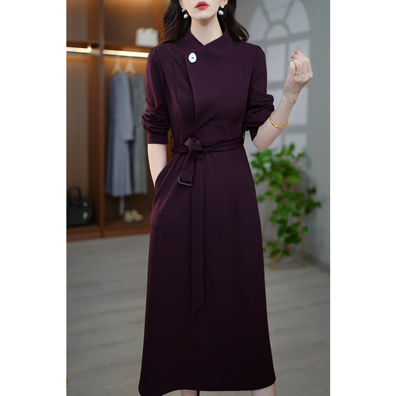 今年流行长袖收腰连衣裙女2026春秋新款妈妈高档气质显瘦纯色裙子