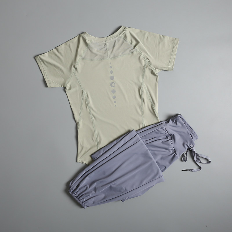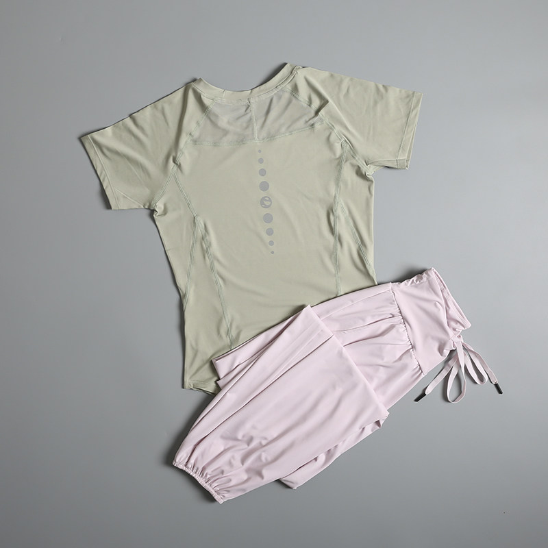 跑步运动套装女夏季2026新款时尚短袖瑜伽服健身长裤速干衣晨跑服