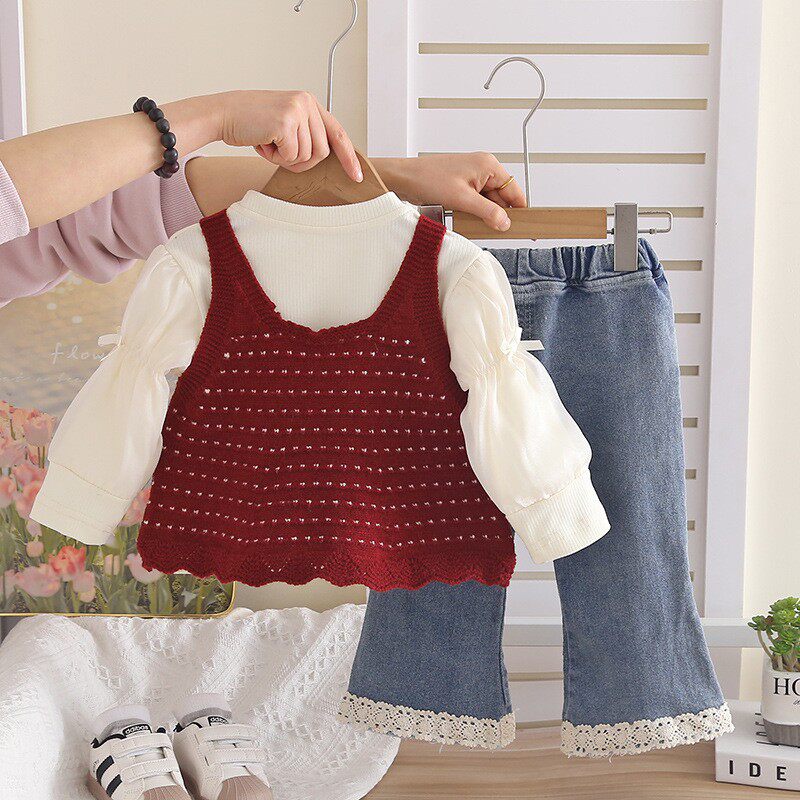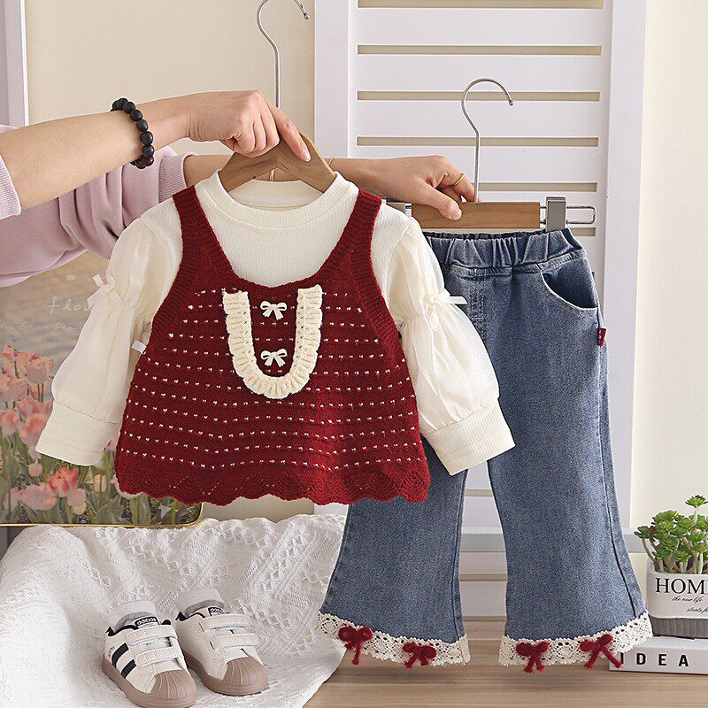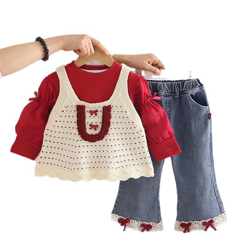 女宝宝春秋洋气时髦2儿童衣服婴儿韩系1岁女童春装蝴蝶结三件套装
