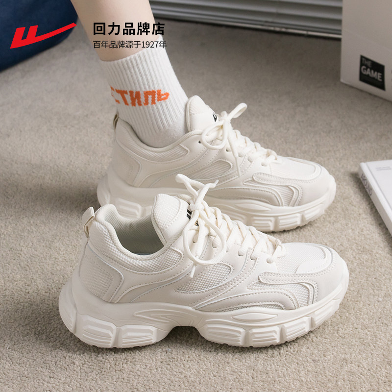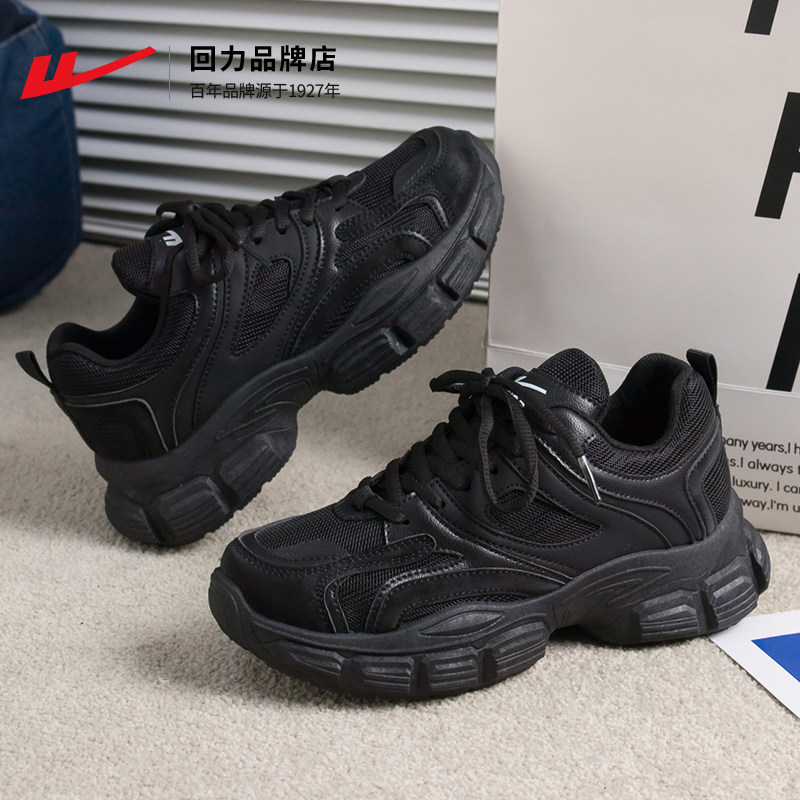 回力黑色老爹鞋女款2026新款春季厚底增高显脚小百搭休闲运动鞋女