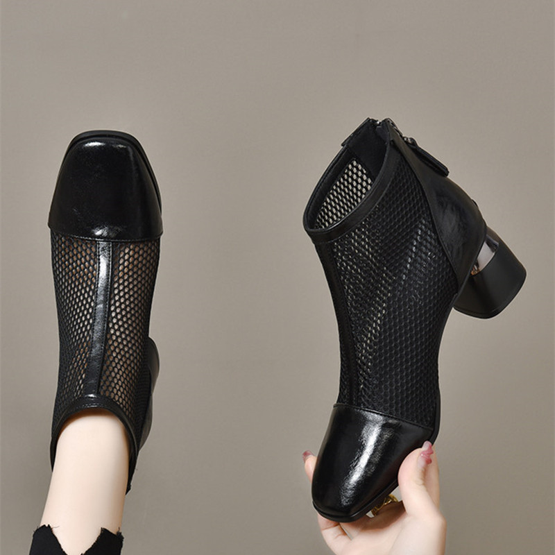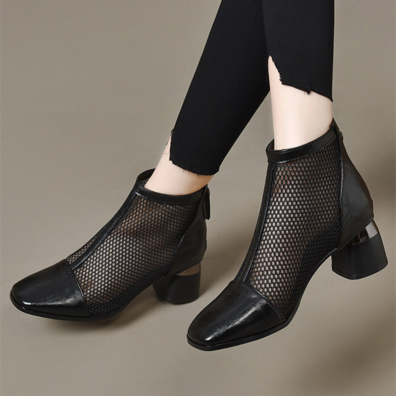 网纱马丁靴夏季薄款女鞋2026年夏季新款网面镂空凉靴粗跟真皮网靴