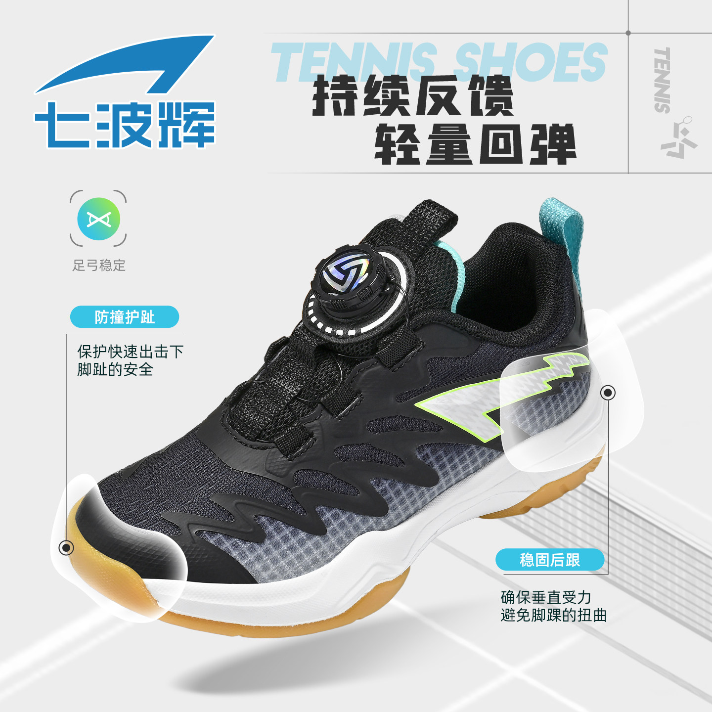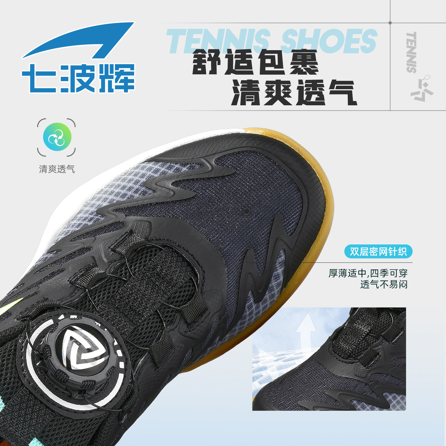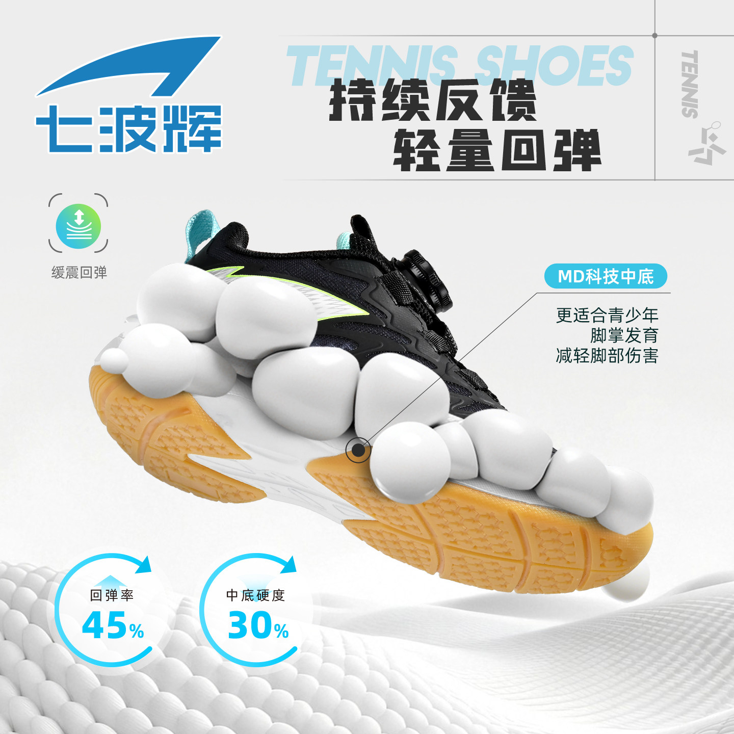 七波辉儿童鞋子男童羽毛球鞋2026春秋季新款透气网面青少年网球鞋