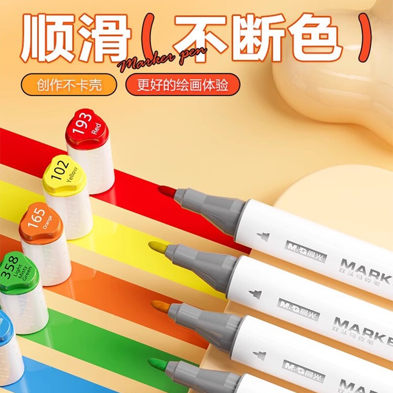晨光油性马克笔小学生美术专用丙烯幼儿园儿童双头防水彩色笔水彩笔绘画笔彩笔套装12/24色48色蓝色可洗速干