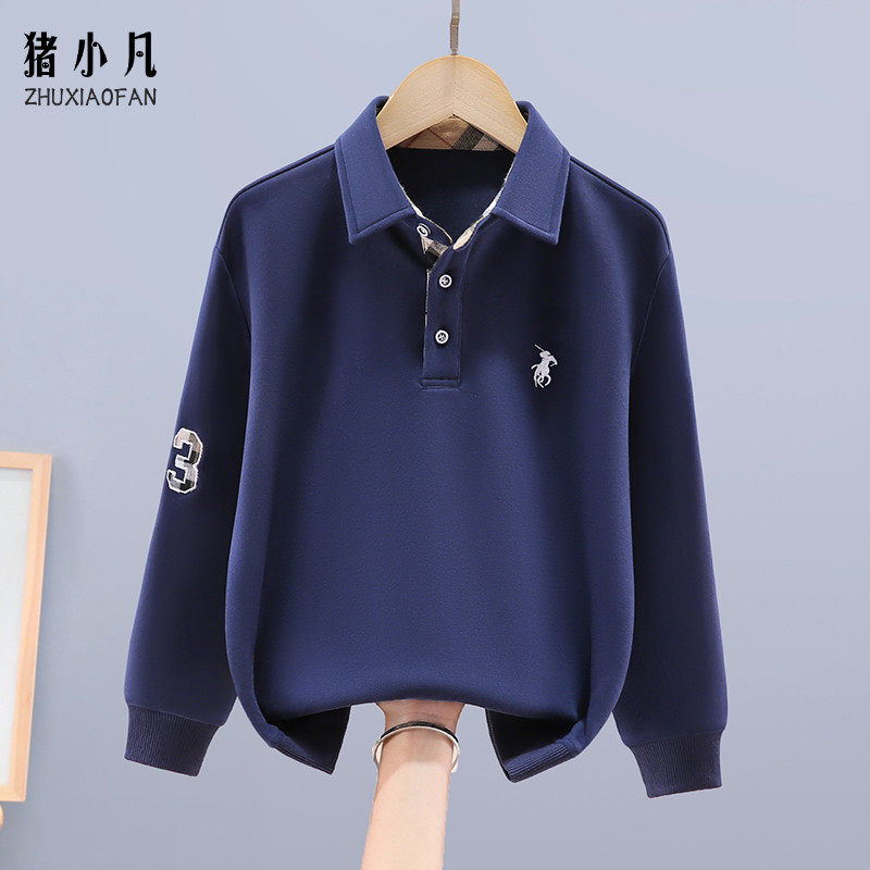 男童翻领卫衣春秋款2026中大童加厚宽松POLO上衣儿童休闲加绒春装