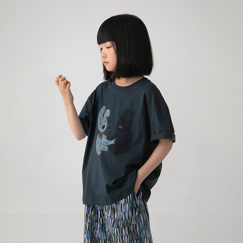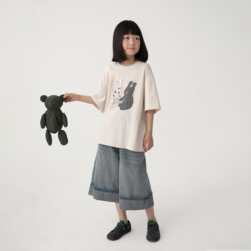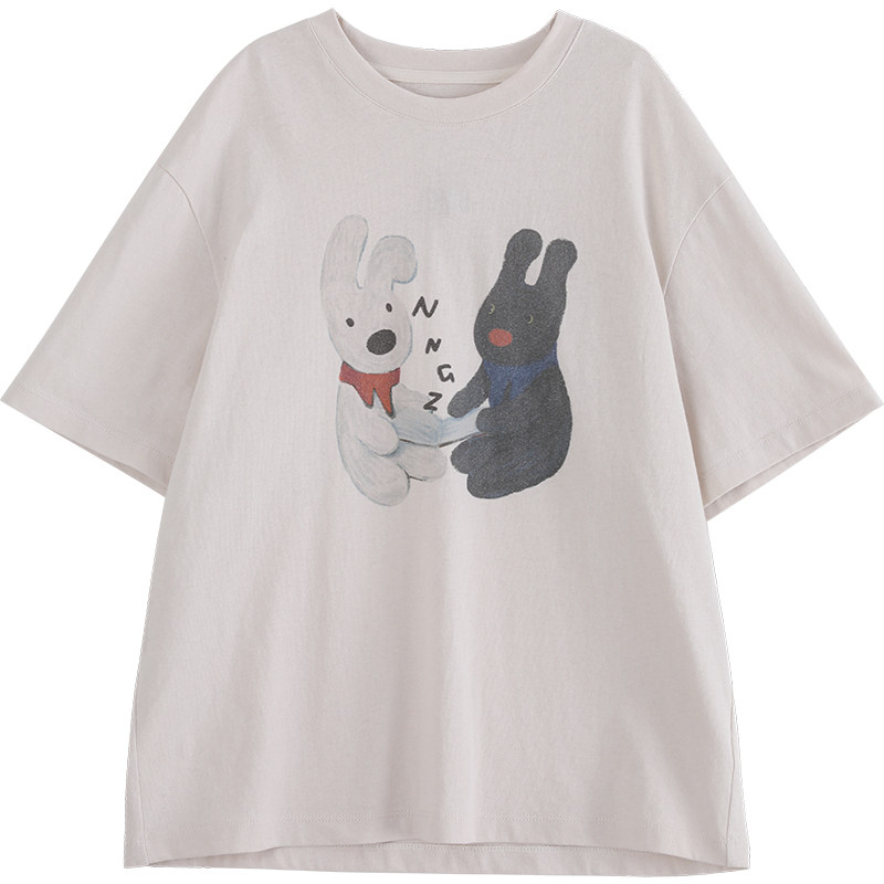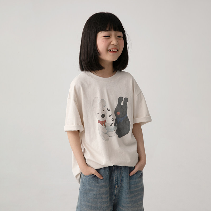 NNGZ夏季女童玩偶印花短袖t恤洋气时髦儿童纯棉上衣童装套头衫
