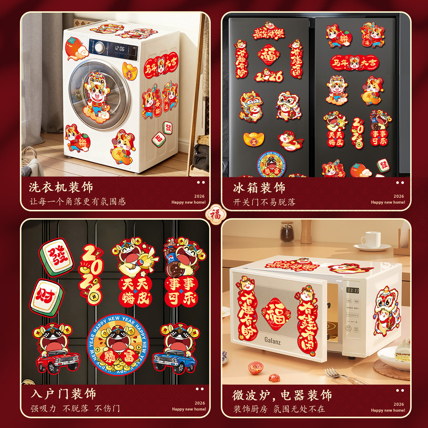 2026新款马年新年装饰过年创意磁吸冰箱贴对联福字挂饰春节装饰品