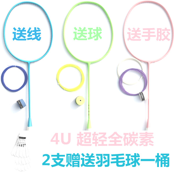 正品全碳素超轻羽毛球拍单拍双拍 纯色男女省队训练拍儿童家庭5U