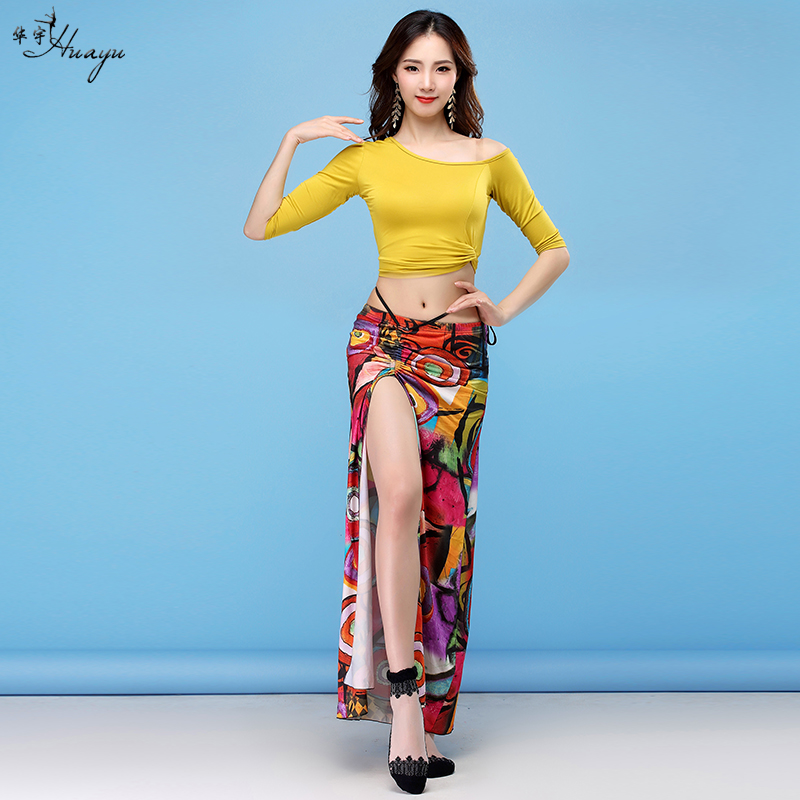 肚皮舞练功服莫代尔性感印花长裙东方舞蹈服套装班服初学者成人女