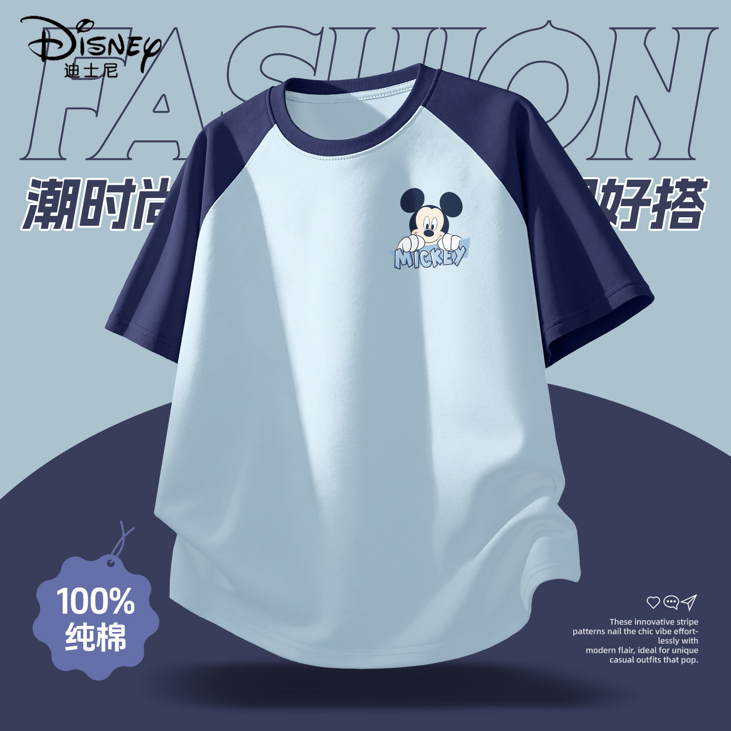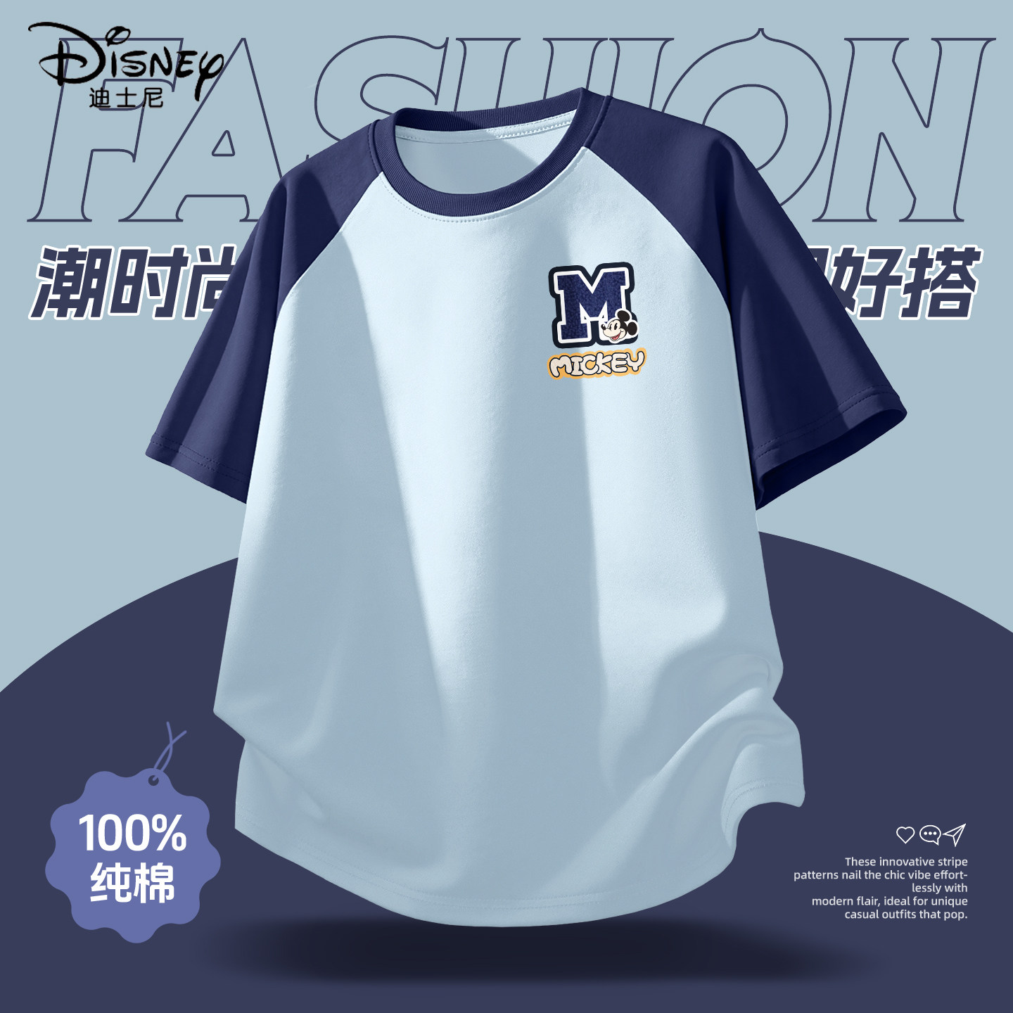 迪士尼男童短袖t恤纯棉贴身帅气衣服2026新款夏装运动儿童上衣男