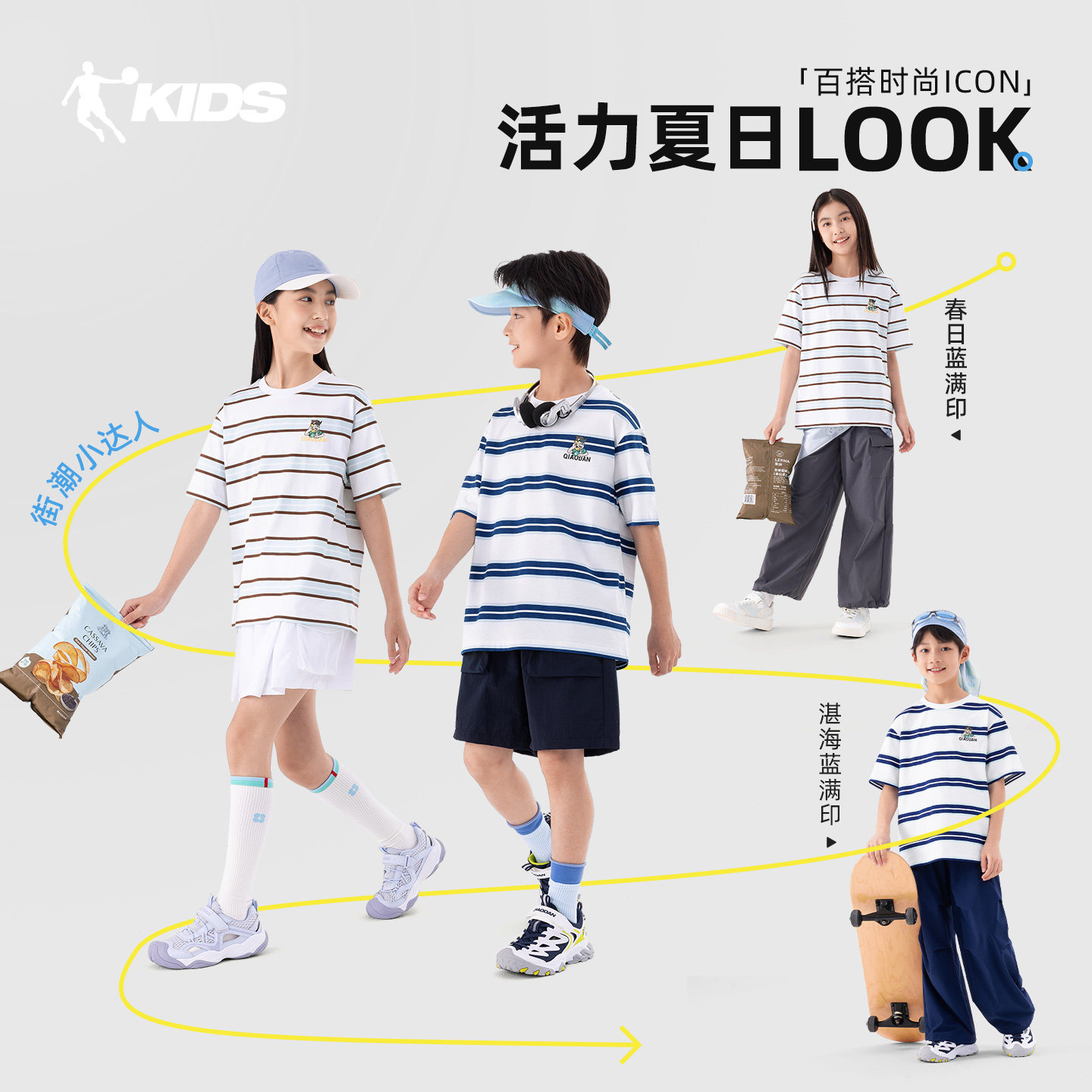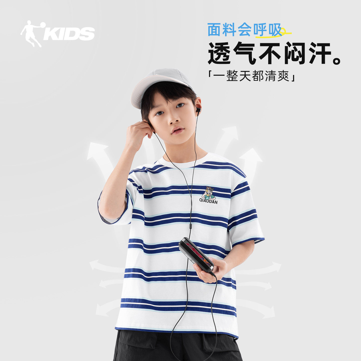 乔丹童装男童纯棉短袖T恤儿童条纹衫2026夏季新款大童休闲上衣潮