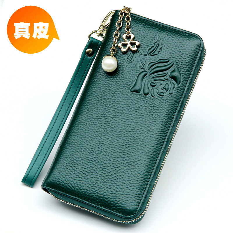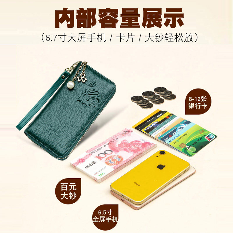 真皮钱包卡包一体女款小包手拿手机包绿色包送妈妈的生日礼物实用