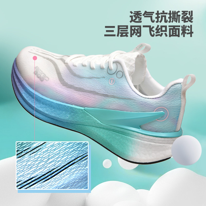 男童跑步鞋秋季小白鞋碳板跑鞋男款爆米花初中军训专用白色运动鞋