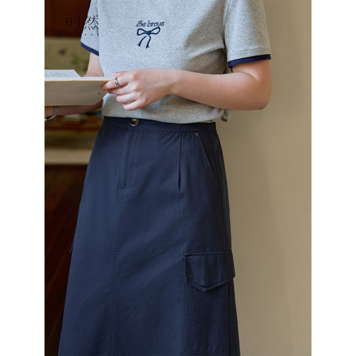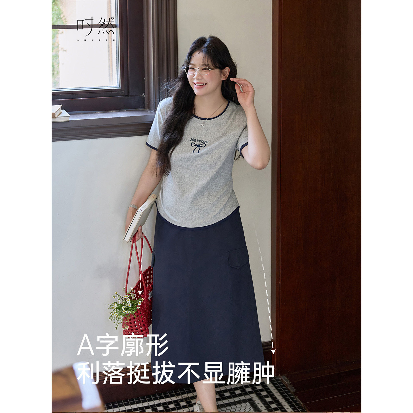 时然微胖大码女装纯棉半身裙2026夏季新款简约遮胯显瘦休闲工装裙