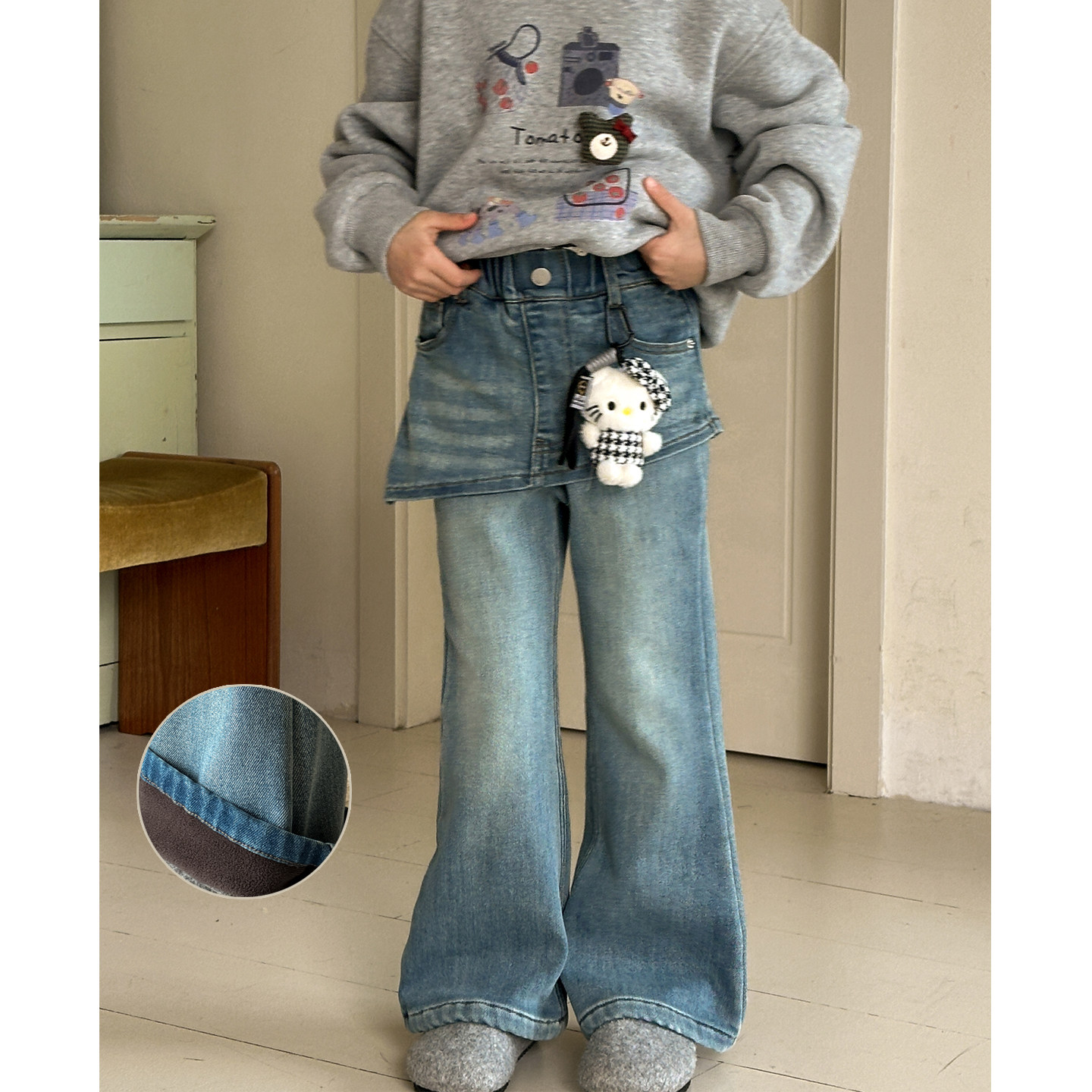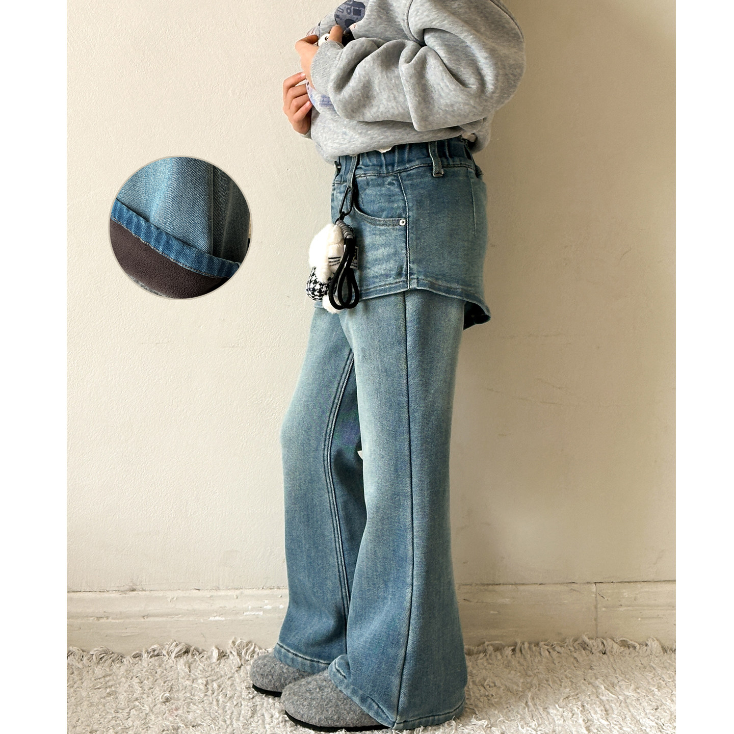 女童加绒牛仔裤2026冬季新款儿童加厚一体绒裤子女大童屁帘阔腿裤