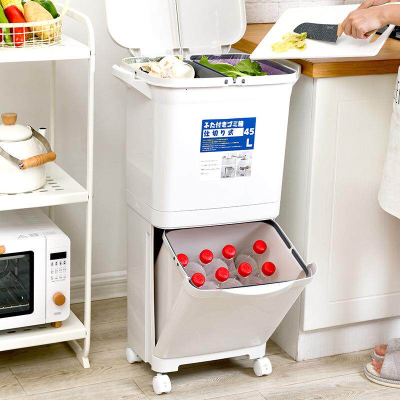 厨房垃圾桶干湿分离大容量收纳桶客厅双层带轮塑料加厚垃圾筒带盖