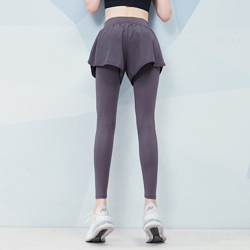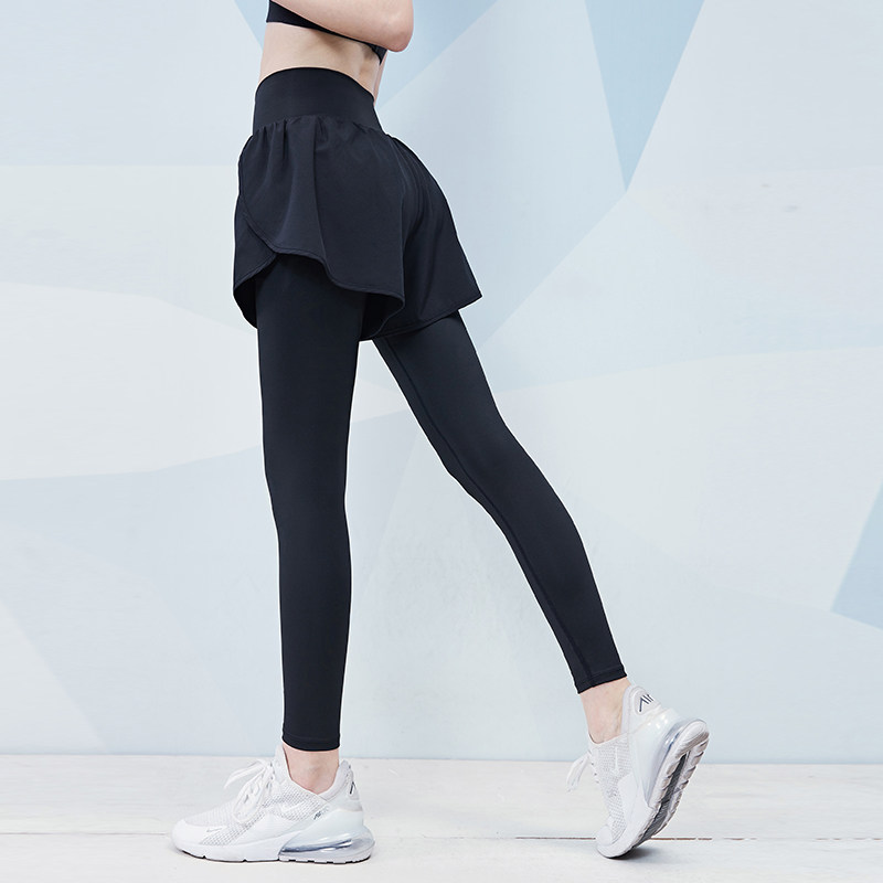 健身裤女秋冬季高腰提臀晨跑步运动紧身裤训练压缩假两件瑜伽长裤