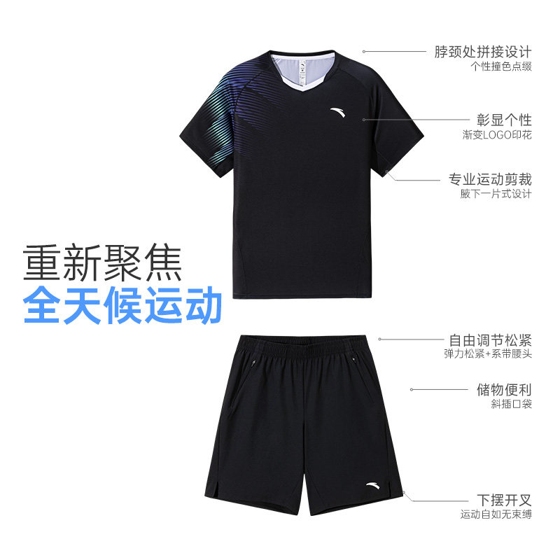 安踏速干羽毛球套装春季透气专业运动服两件套男训练服男短袖短裤