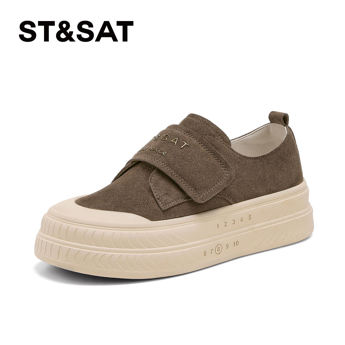 星期六复古厚底板鞋新款春季魔术贴巨好看单鞋时尚休闲百搭女鞋子
