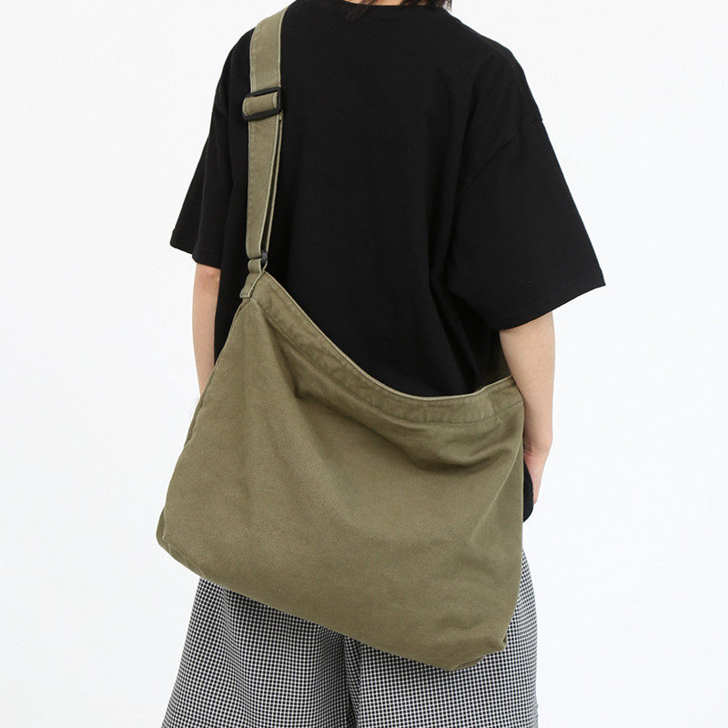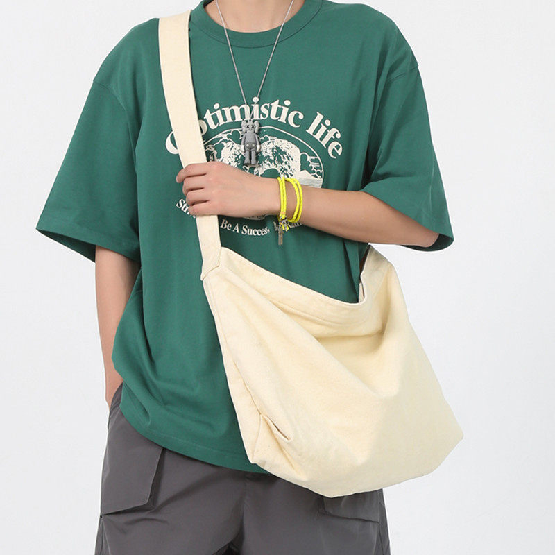 大容量帆布包男潮斜挎包休闲单肩包2024新款日系大学生简约邮差包