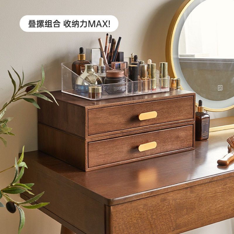 实木桌面多层抽屉式收纳盒家用办公桌杂物文件储物盒电脑增高架子