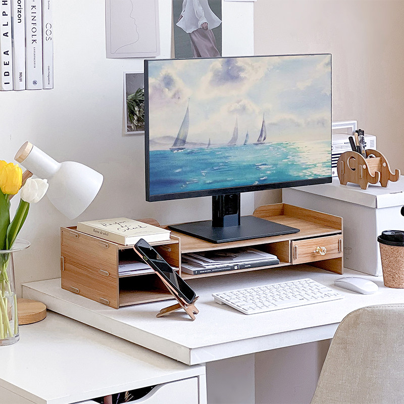 台式显示器屏电脑增高架子办公室底座支架桌面键盘收纳抽屉置物架