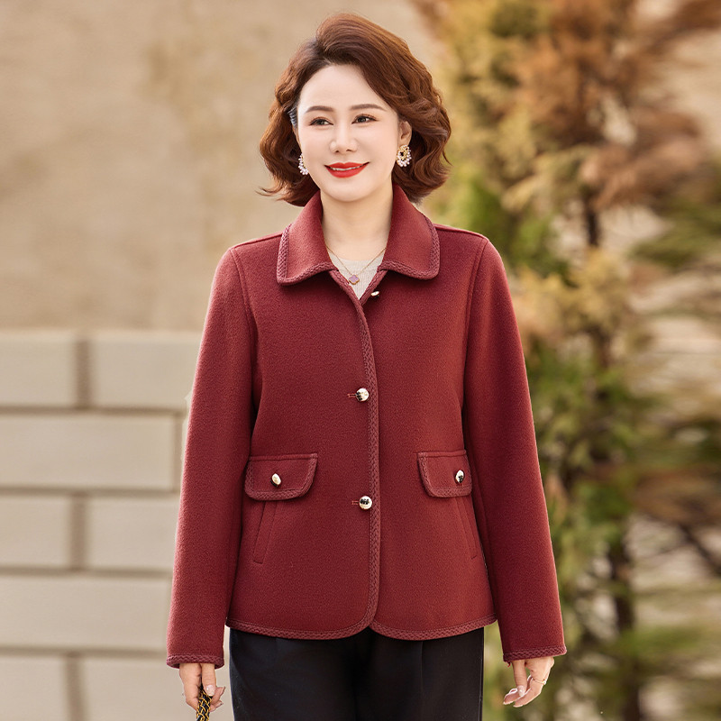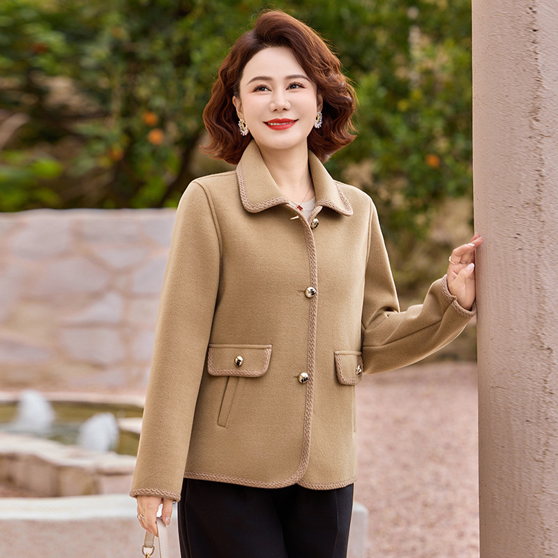 中年妈妈春装小香风双面呢子大衣2026新款洋气中老年女装毛呢外套