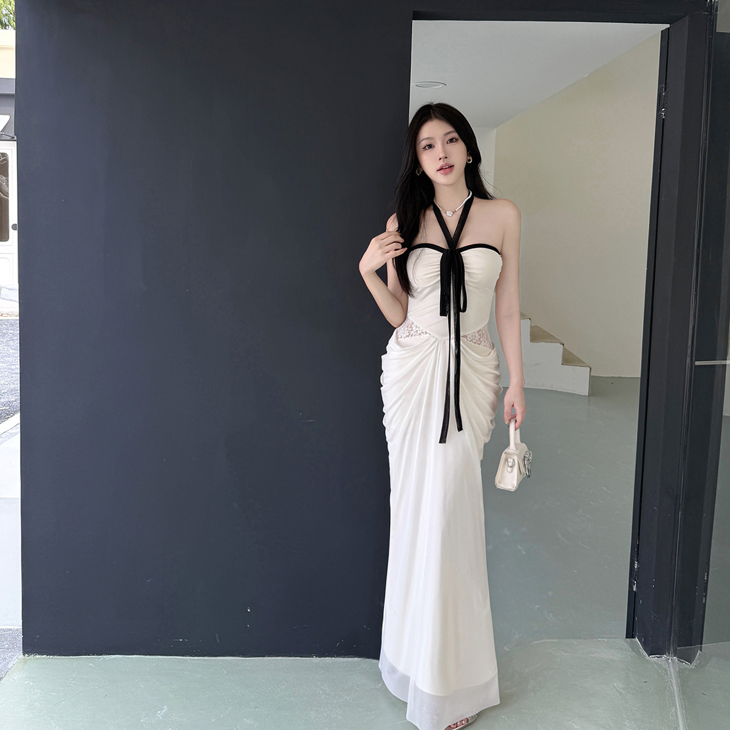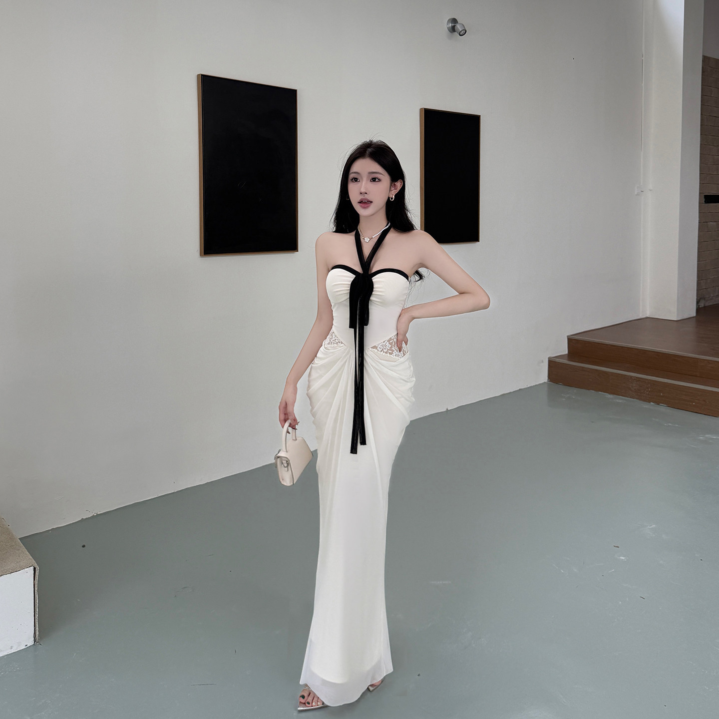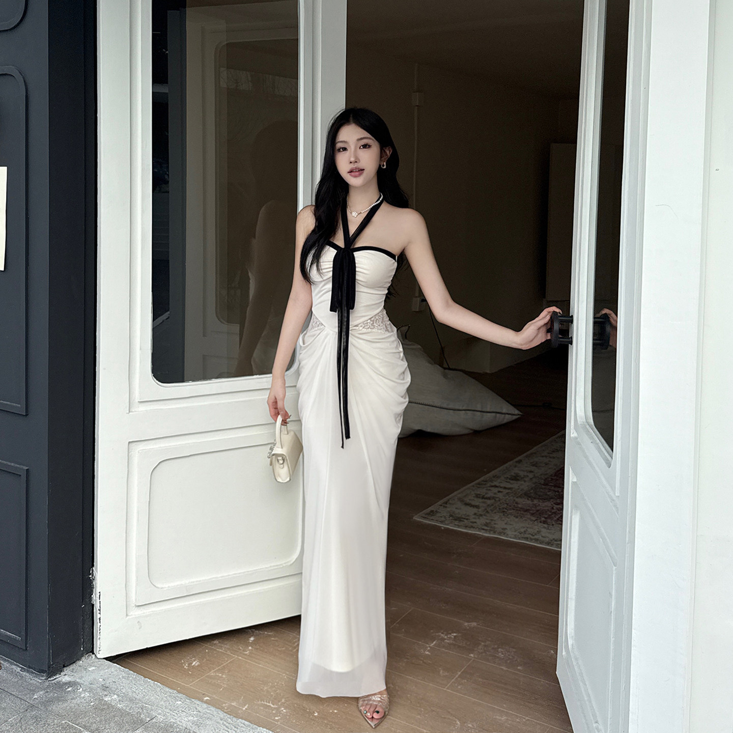 GirlsAt18 性感白色挂脖连衣裙女法式高级生日礼服裙修身抹胸长裙