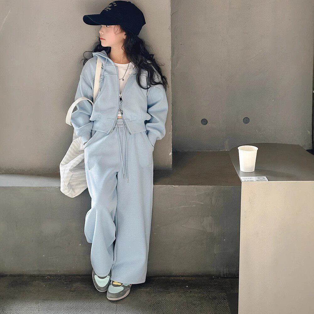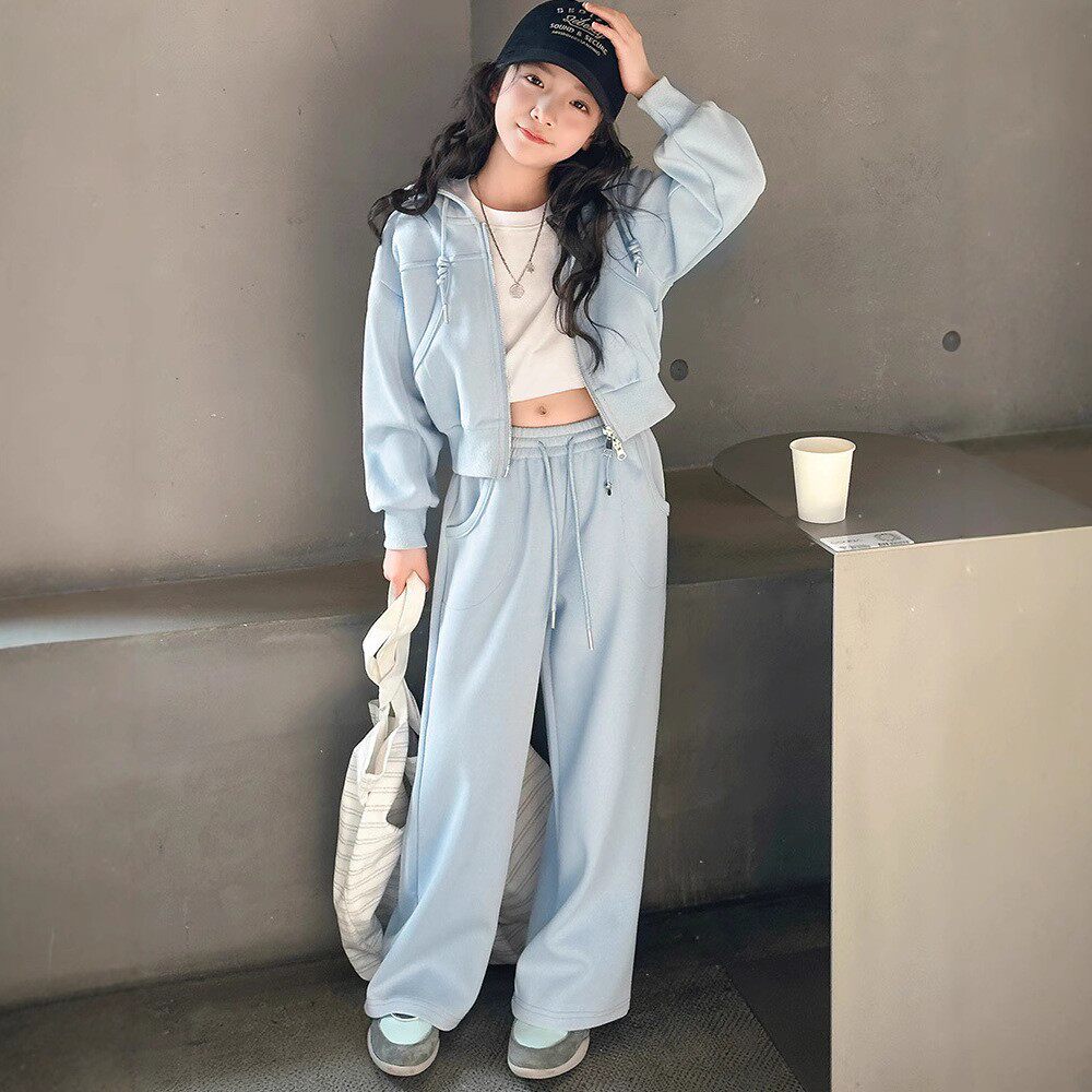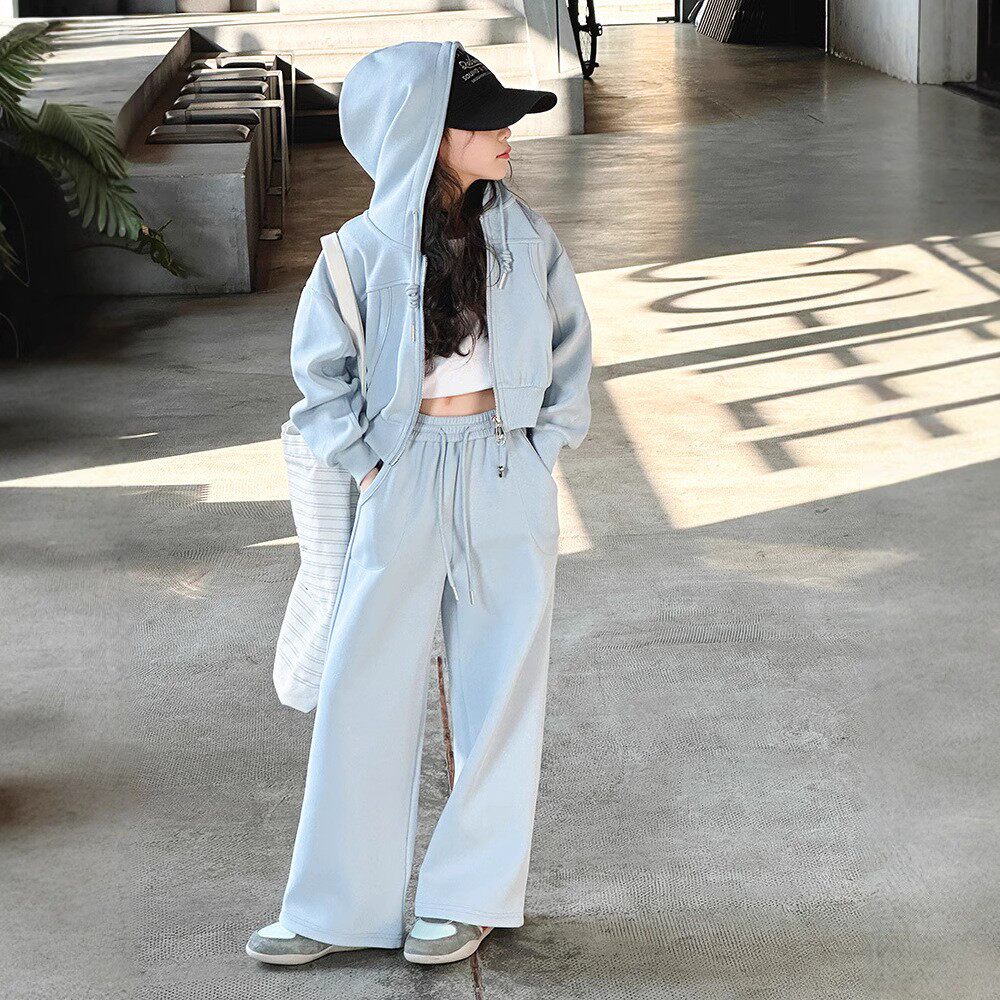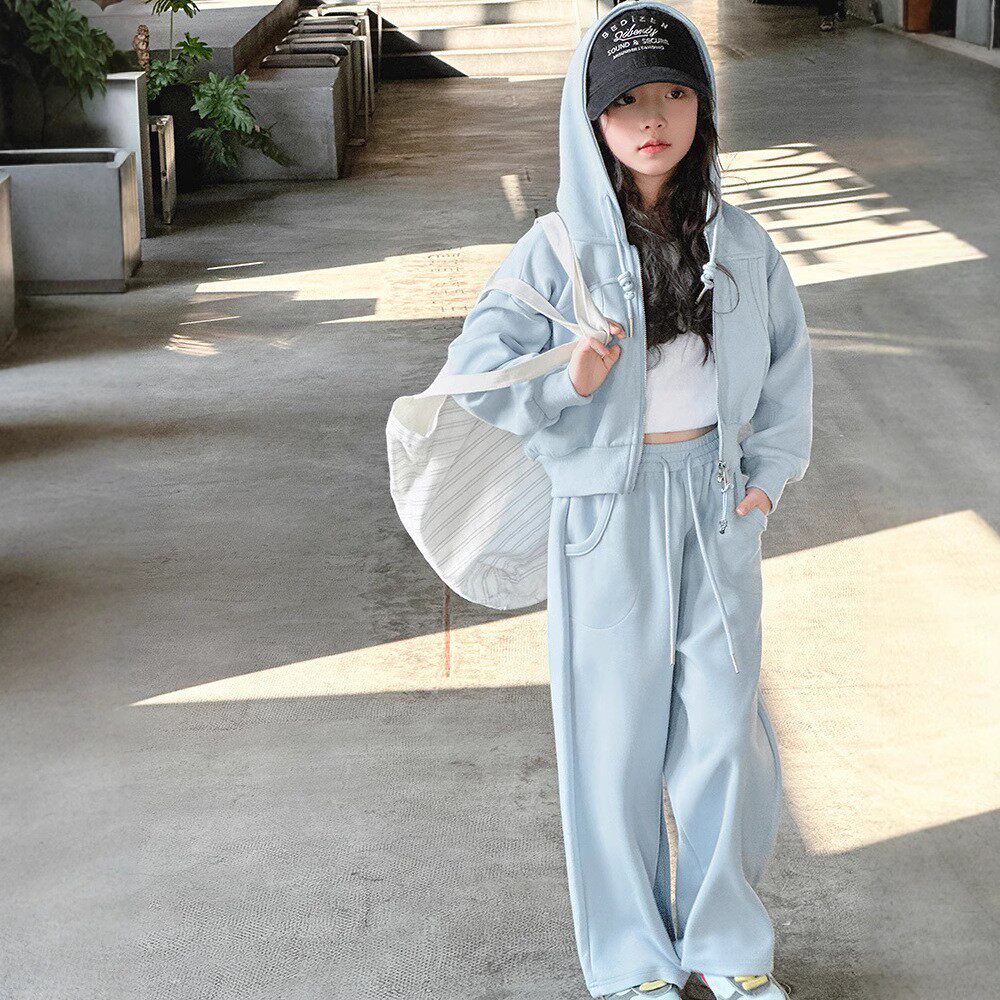 女童运动套装春季2025新款中大童连帽外套纯棉百搭裤子休闲两件套