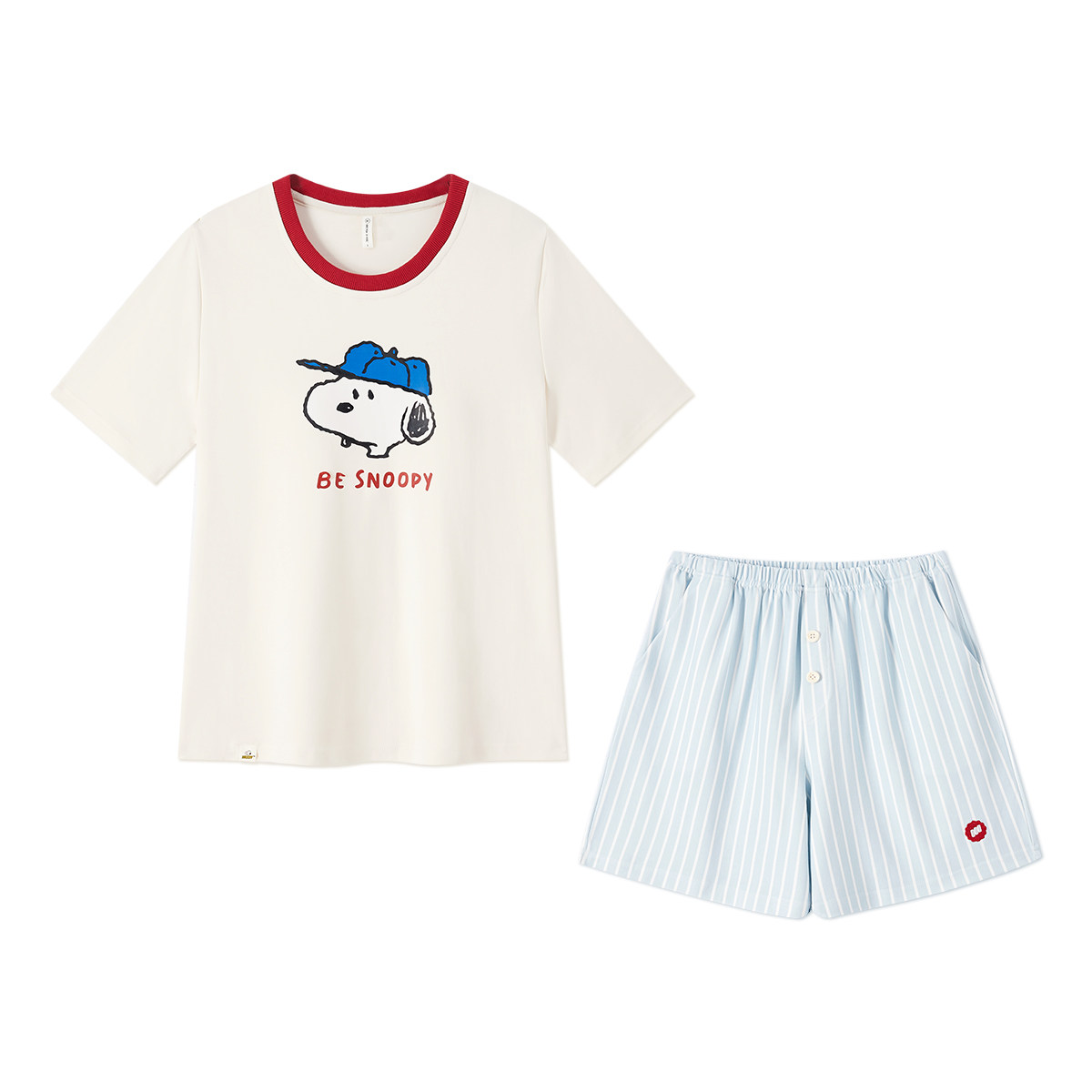 史努比纯棉睡衣女款夏季短袖短裤可爱女士夏家居服套头带胸垫夏天