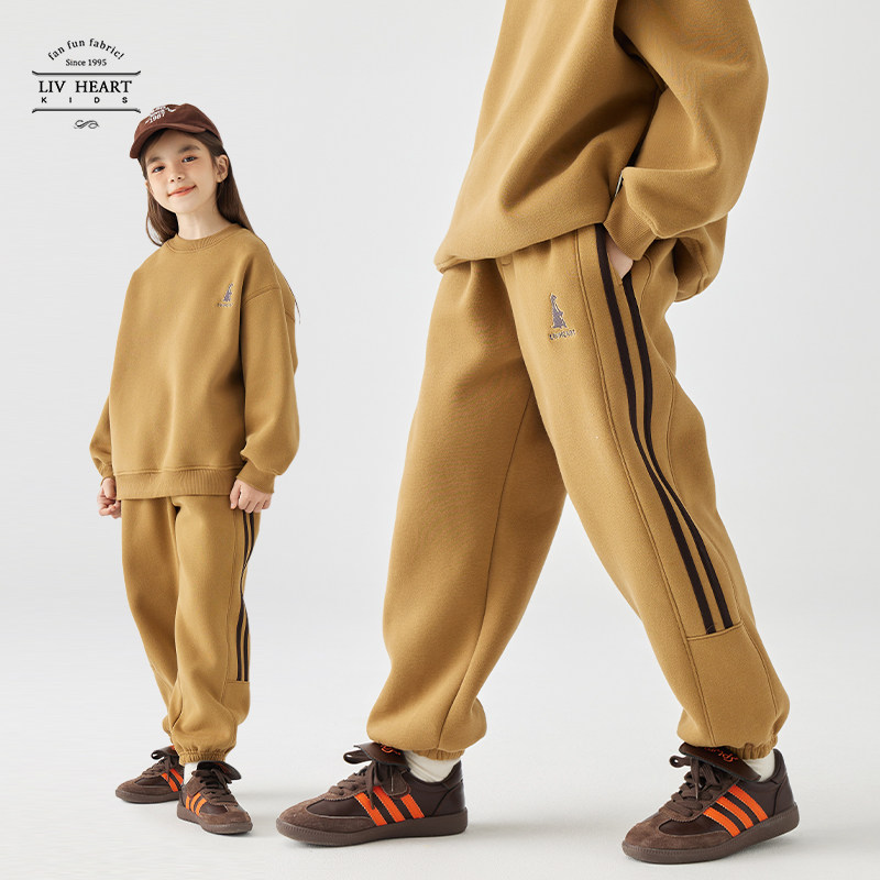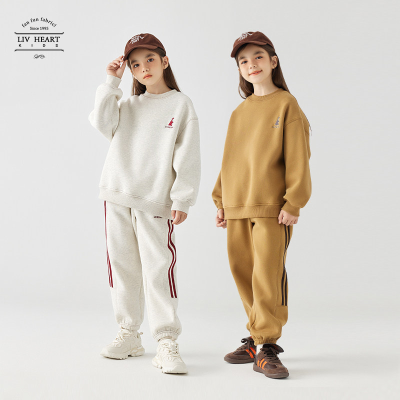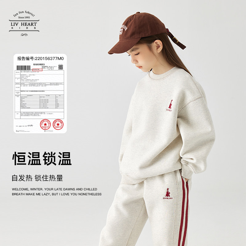 日本LIV 儿童加绒卫衣卫裤套装女秋冬加厚休闲运动两件套女童大童