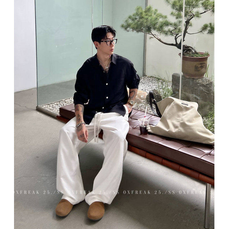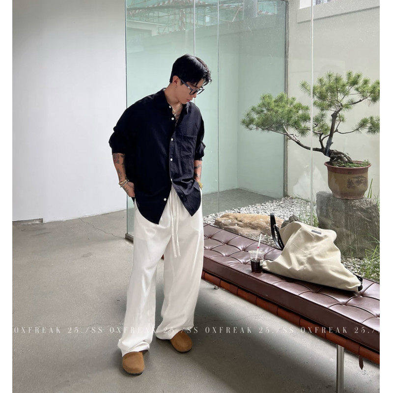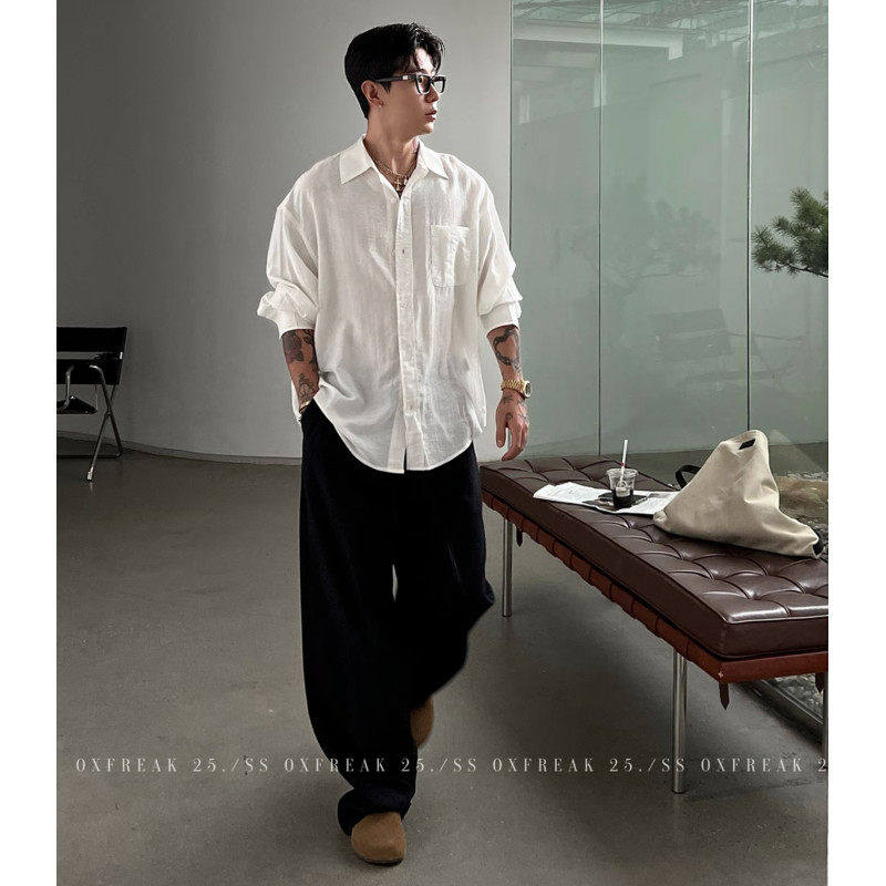 老钱风衣服男款衬衫长袖纯棉衬衣2026新款春装上衣潮流休闲风