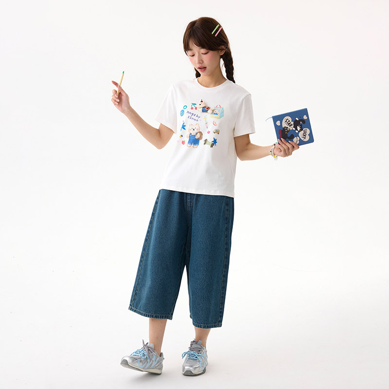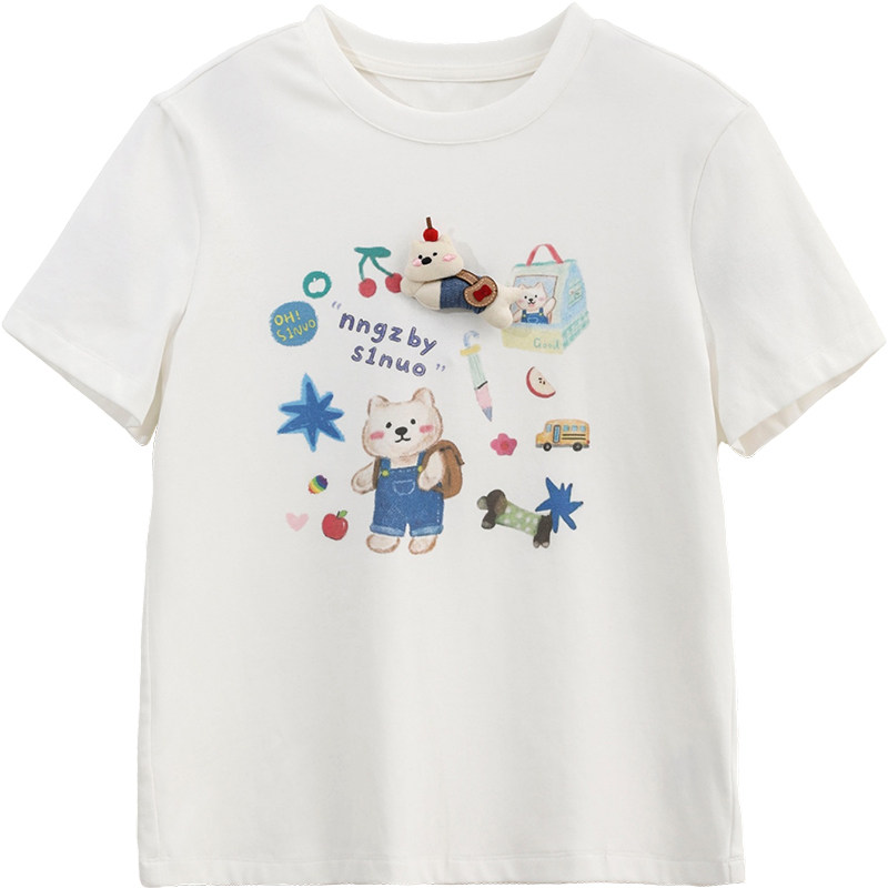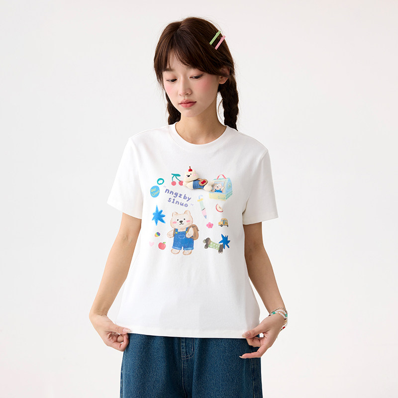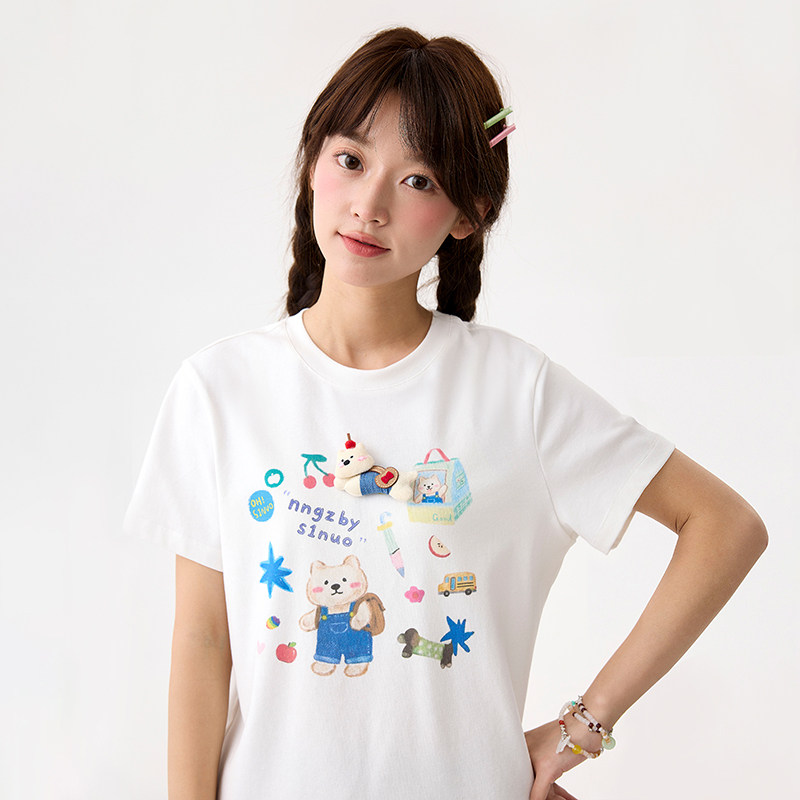 诺诺公主S1N初中生修身正肩短袖T恤女2026夏季元气学院风印花上衣