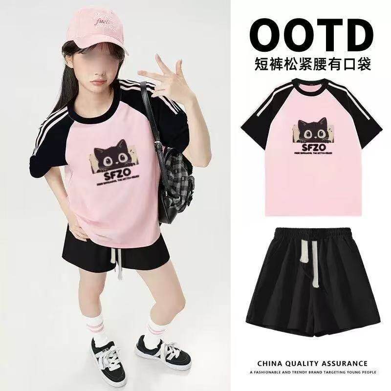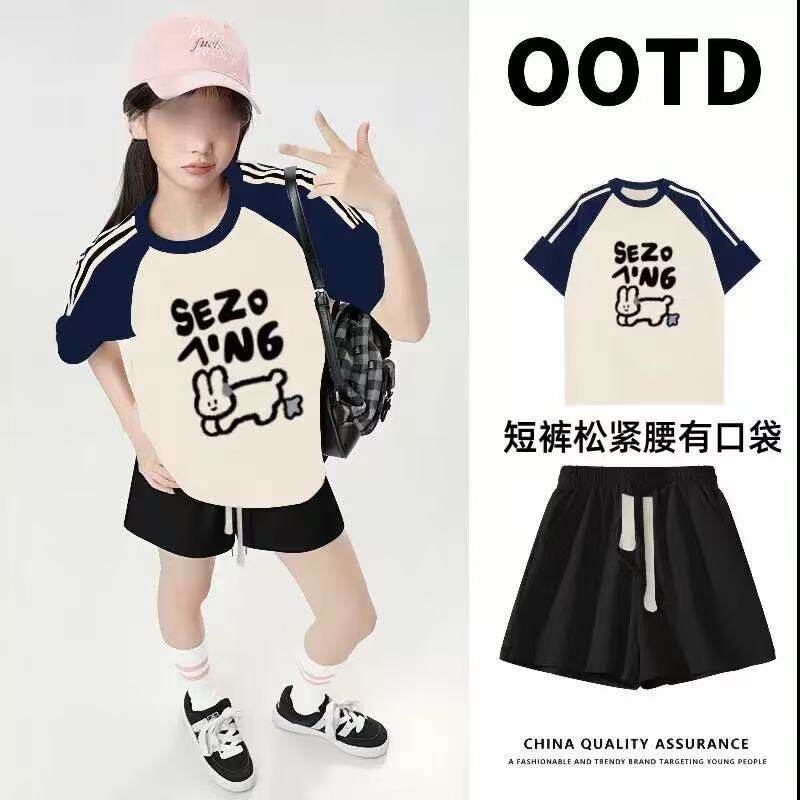 青少年女装初中生夏季运动套装学院风短袖T恤高中学生短裤两件套