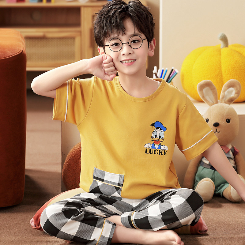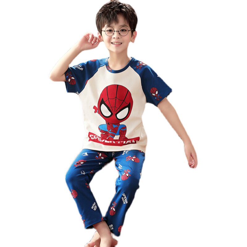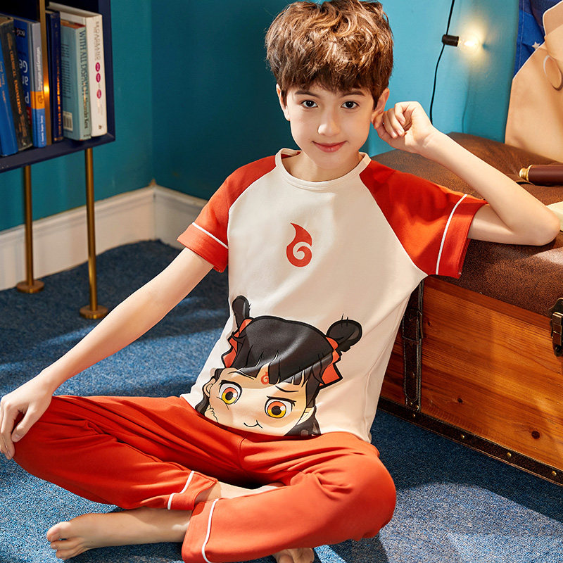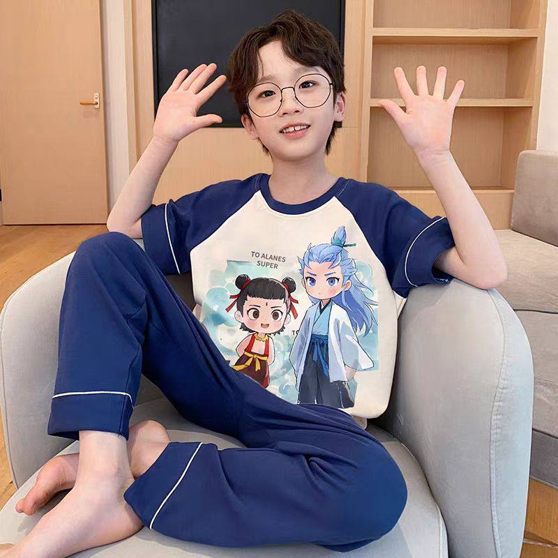 男童睡衣儿童春秋薄款短袖长裤中大童夏季纯棉男孩卡通家居服套装