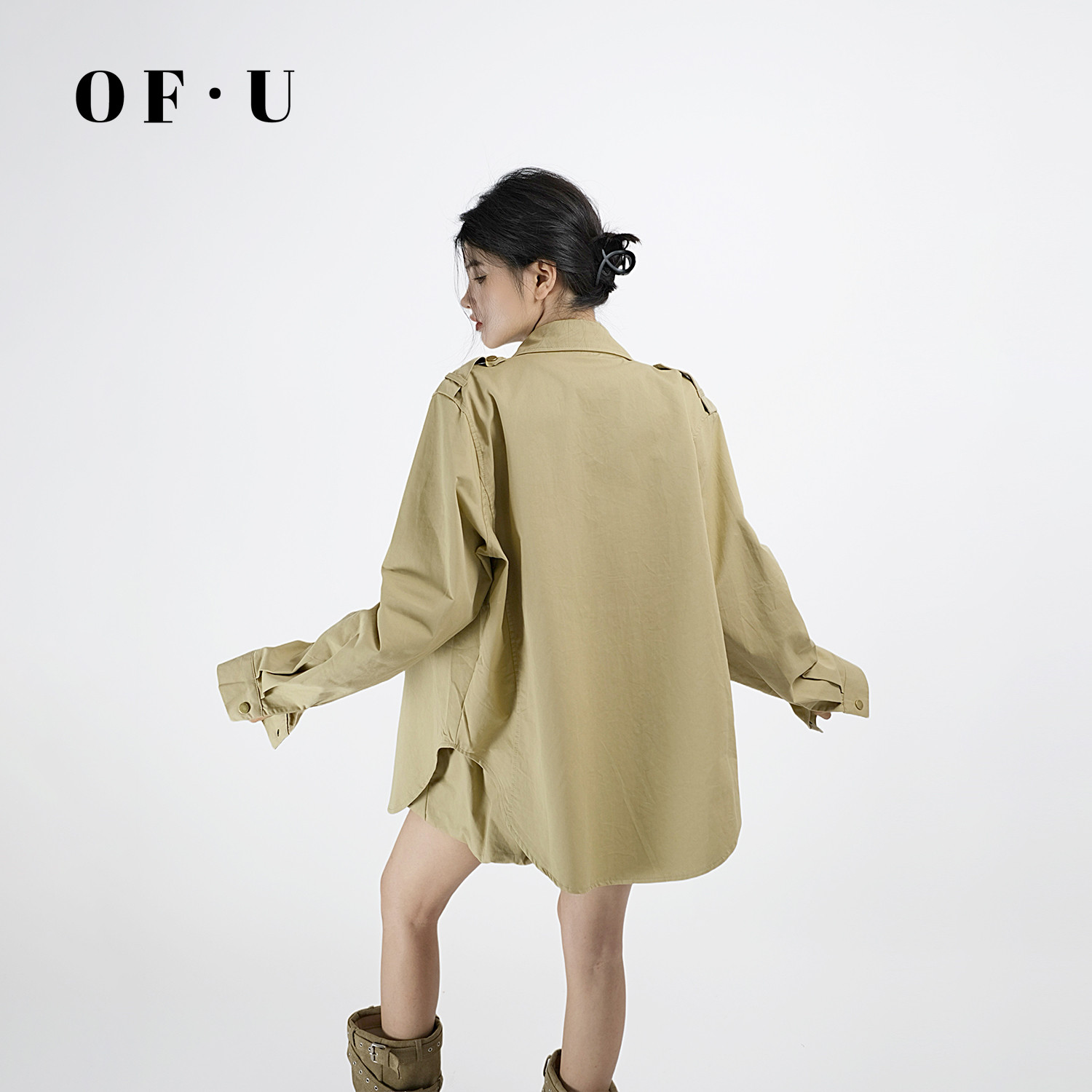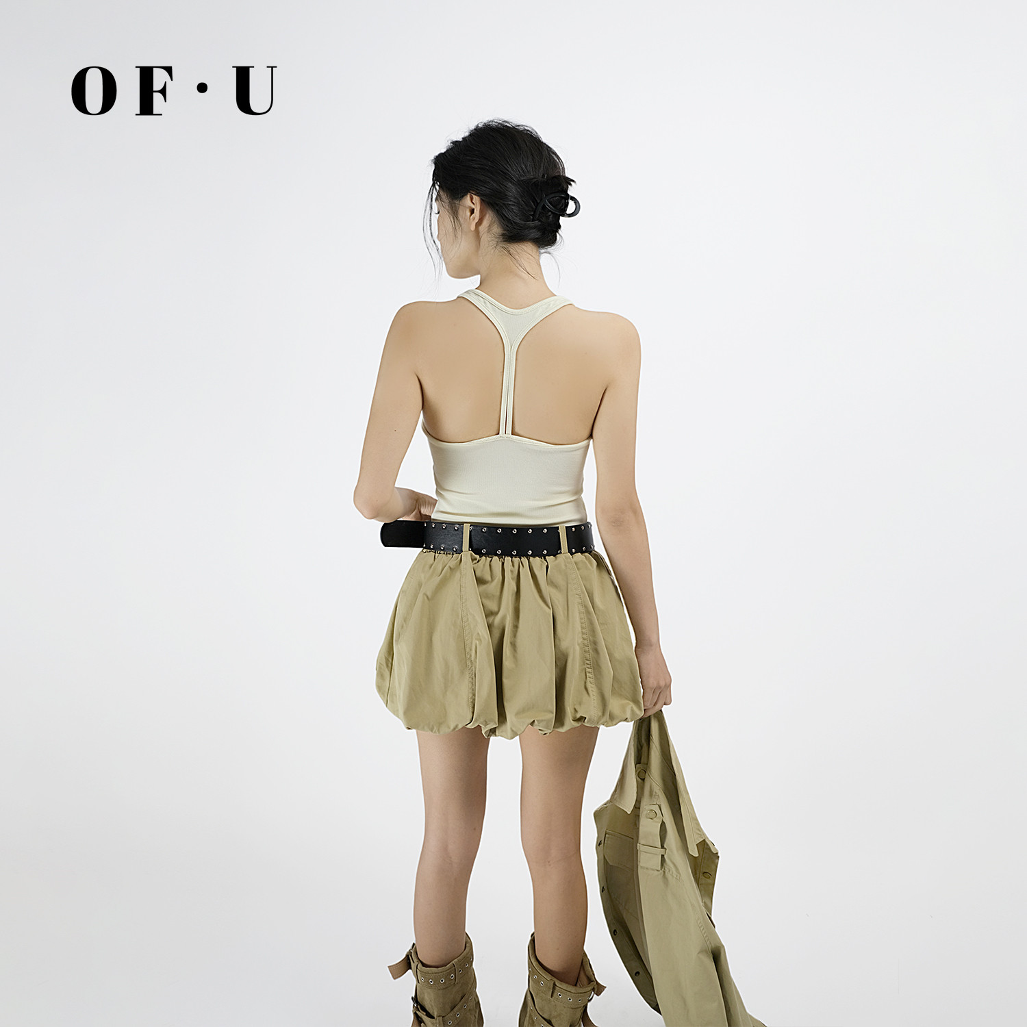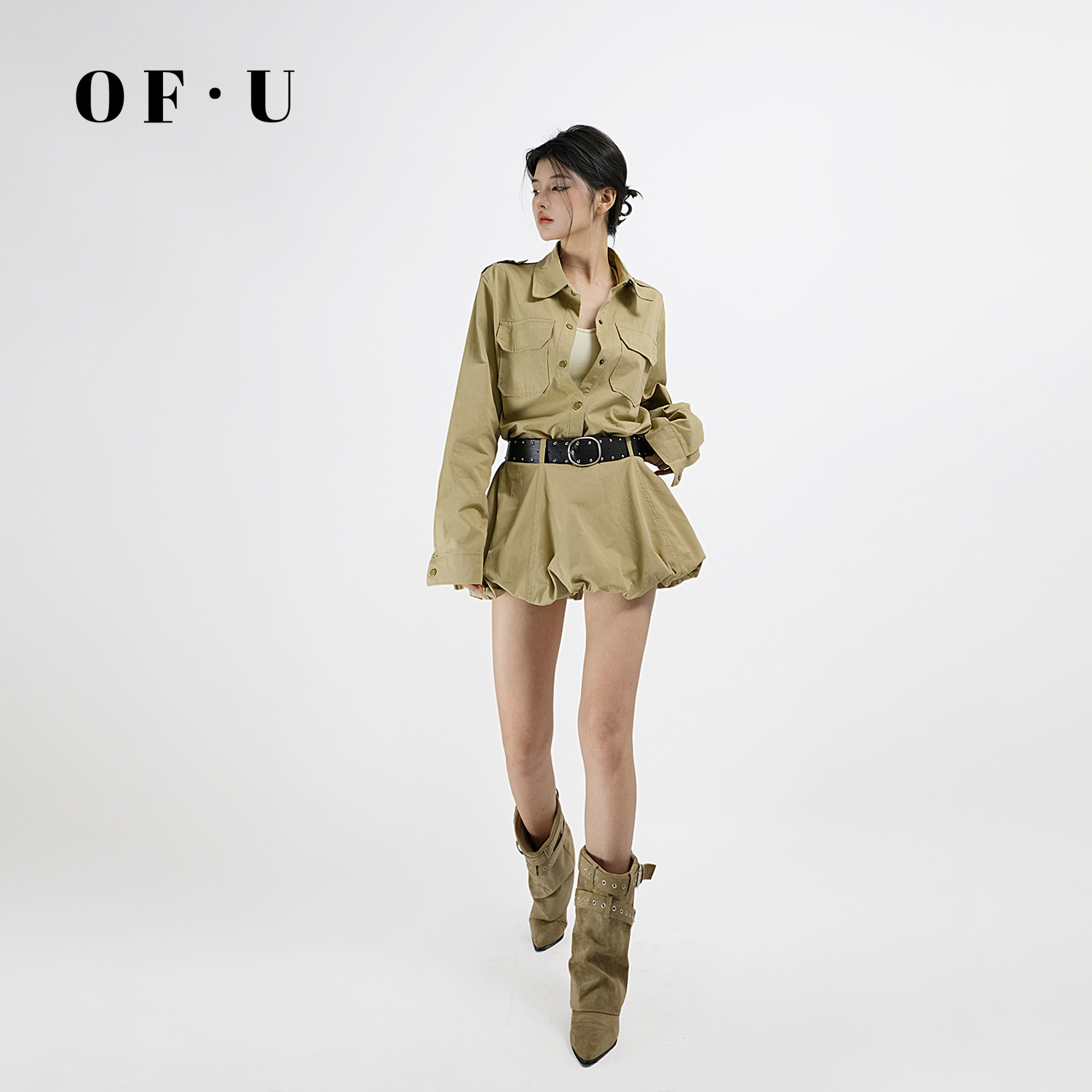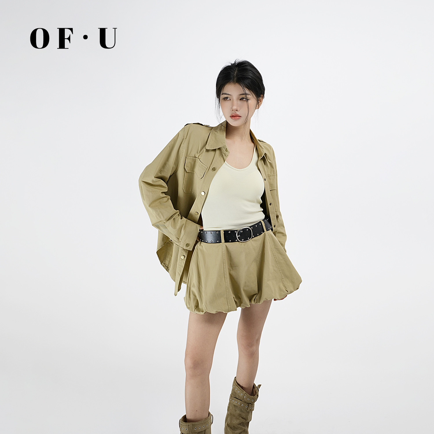 OF U花苞短裙三件套女长袖翻领衬衫外套美式辣妹工装套装春夏新款