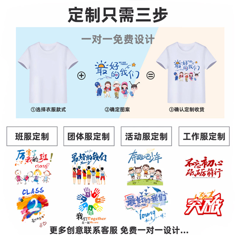 纯棉儿童T恤定制logo白色男女童DIY照片短袖小学生幼儿园班服印字
