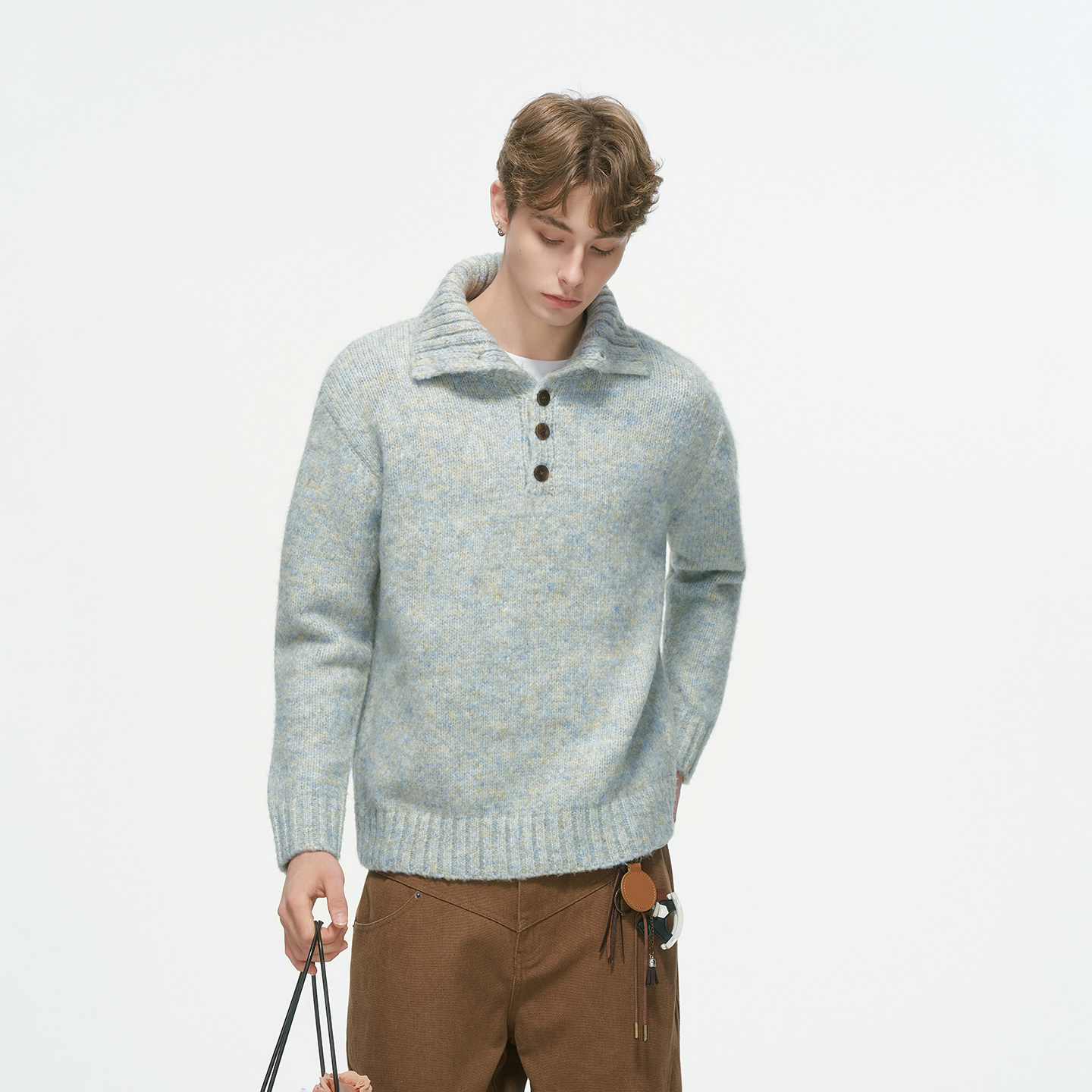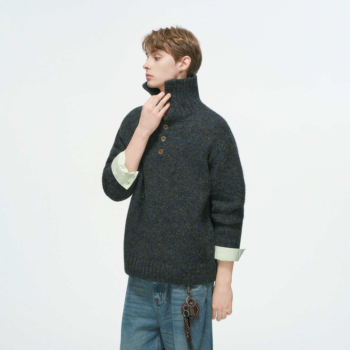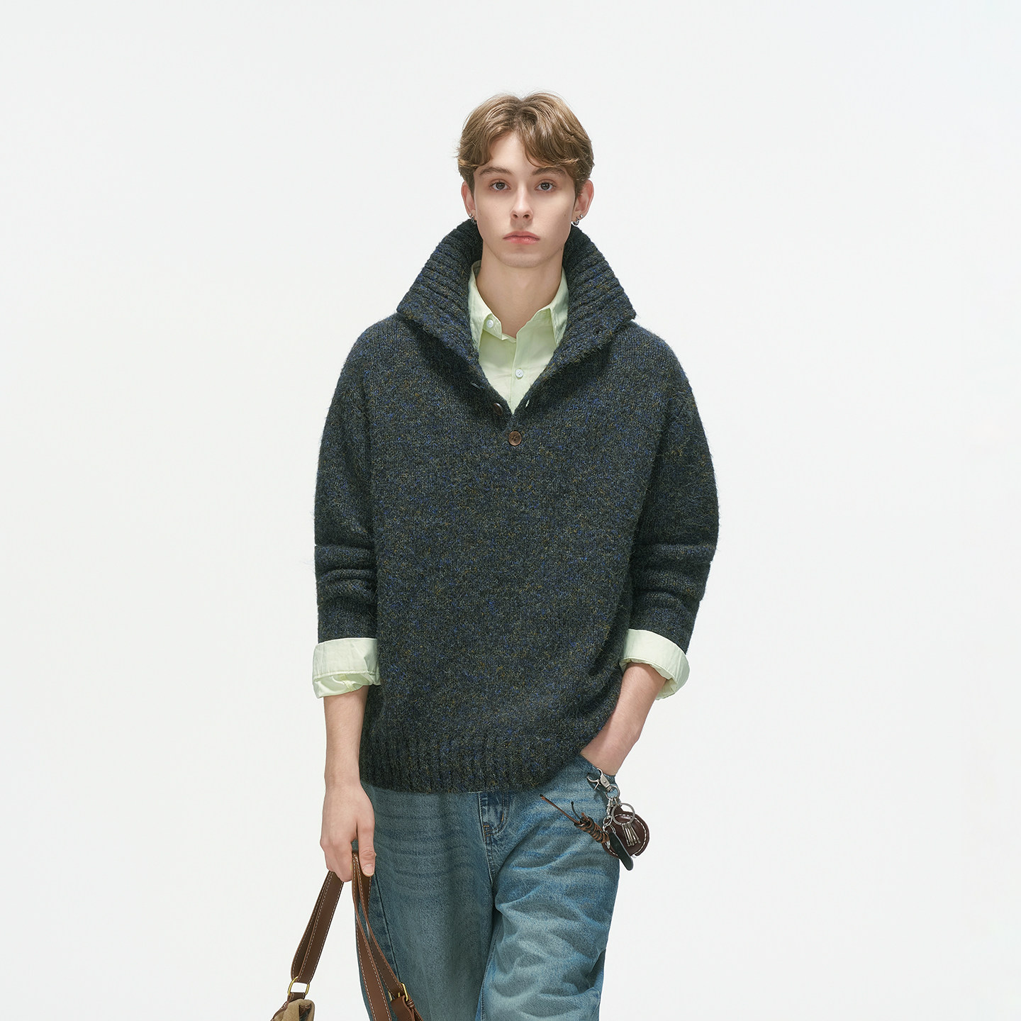 Dream made 老钱风高领松弛感套头毛衣男款秋冬季翻领轻奢针织衫