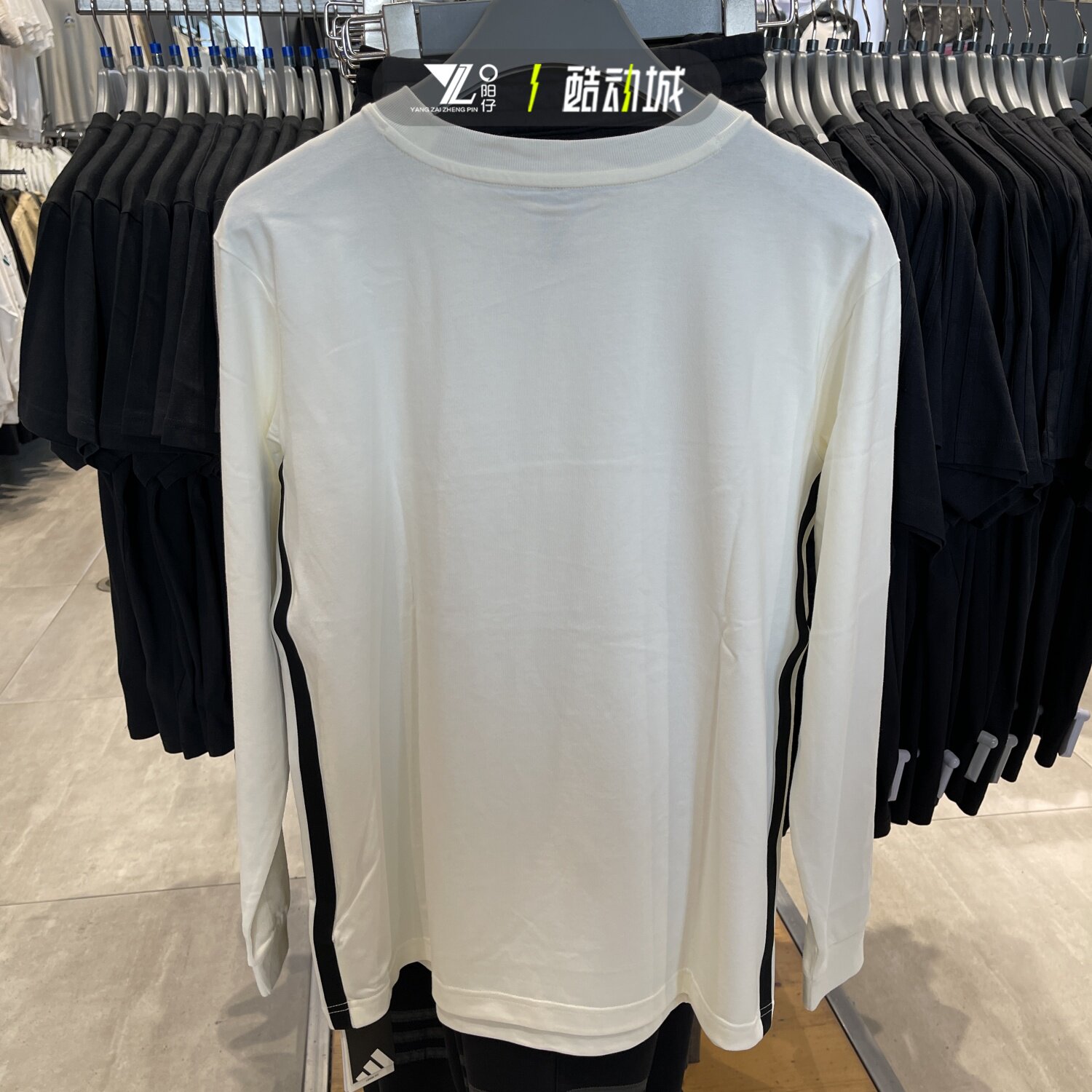 Adidas阿迪达斯男女同款三条纹卫衣白色圆领长袖T恤套头衫KF5187