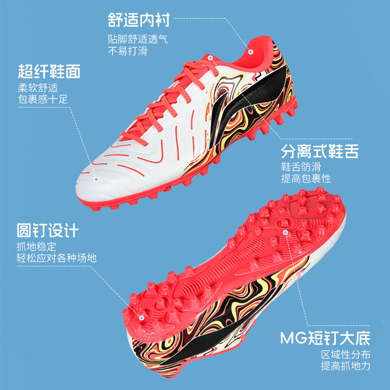 李宁儿童足球鞋男童女孩MG短钉TF碎钉少儿青少年小学生训练专用鞋