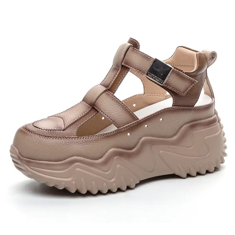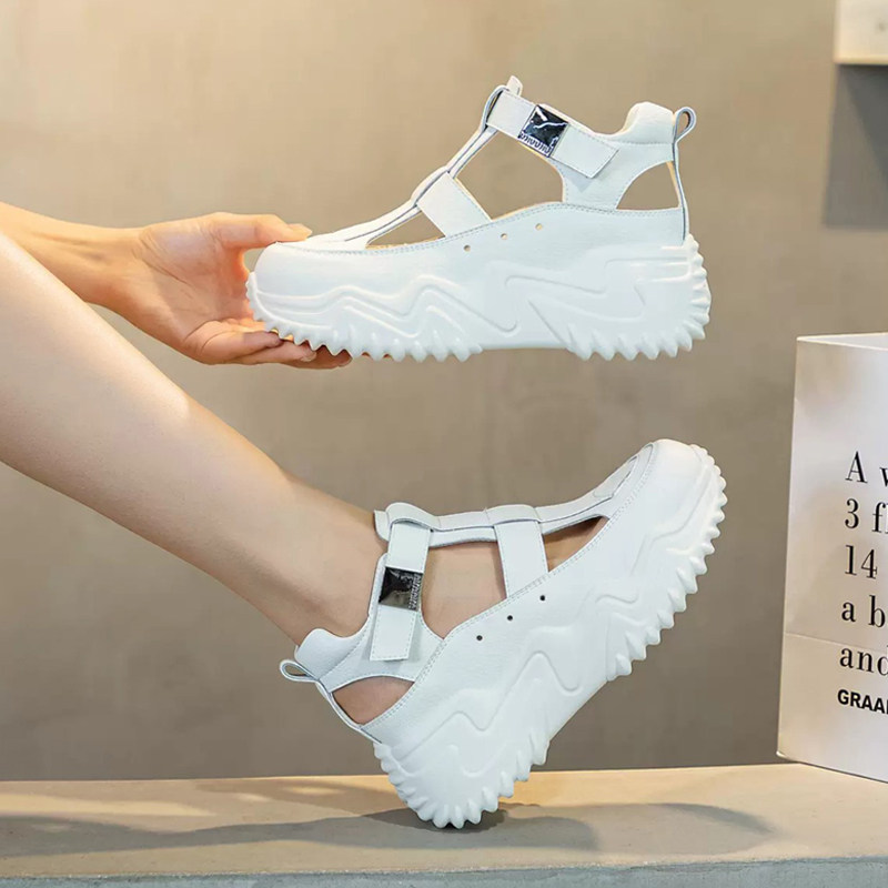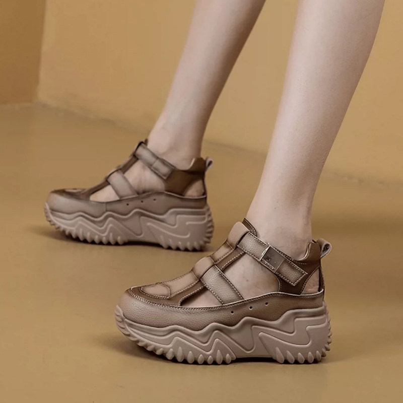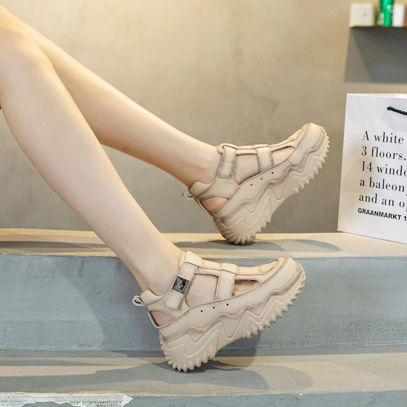 厚底凉鞋女2026新款夏季百搭镂空真皮运动休闲增高洞洞罗马凉鞋子