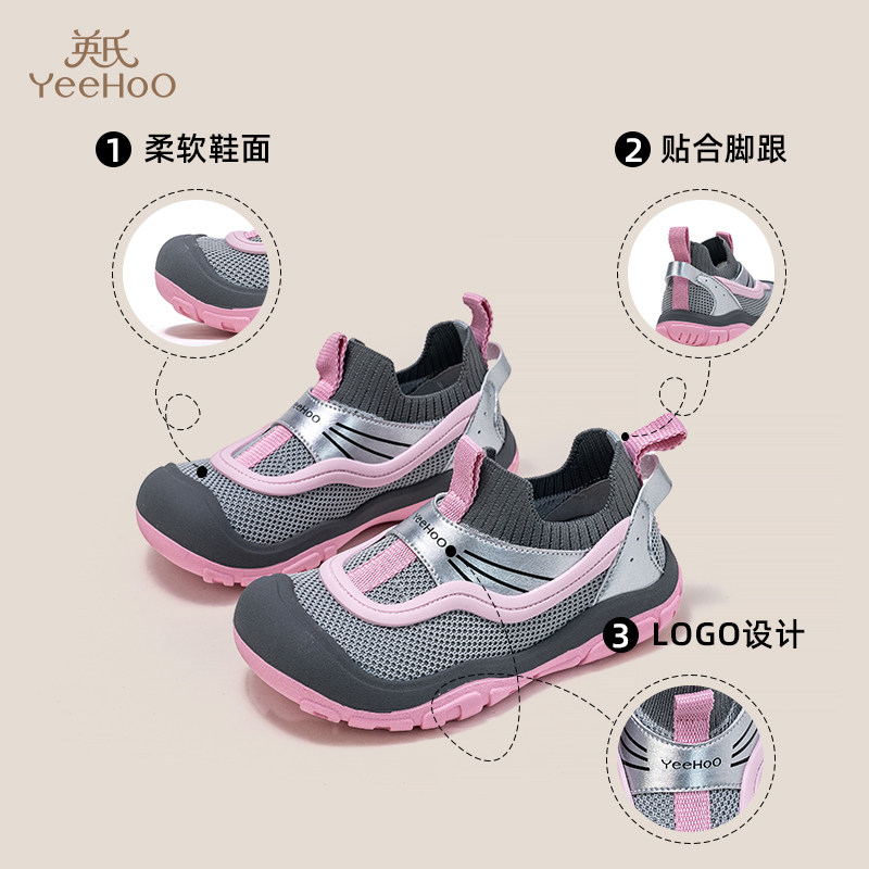 英氏童鞋2026春季新款休闲鞋女童透气登山鞋男童包头防撞运动鞋