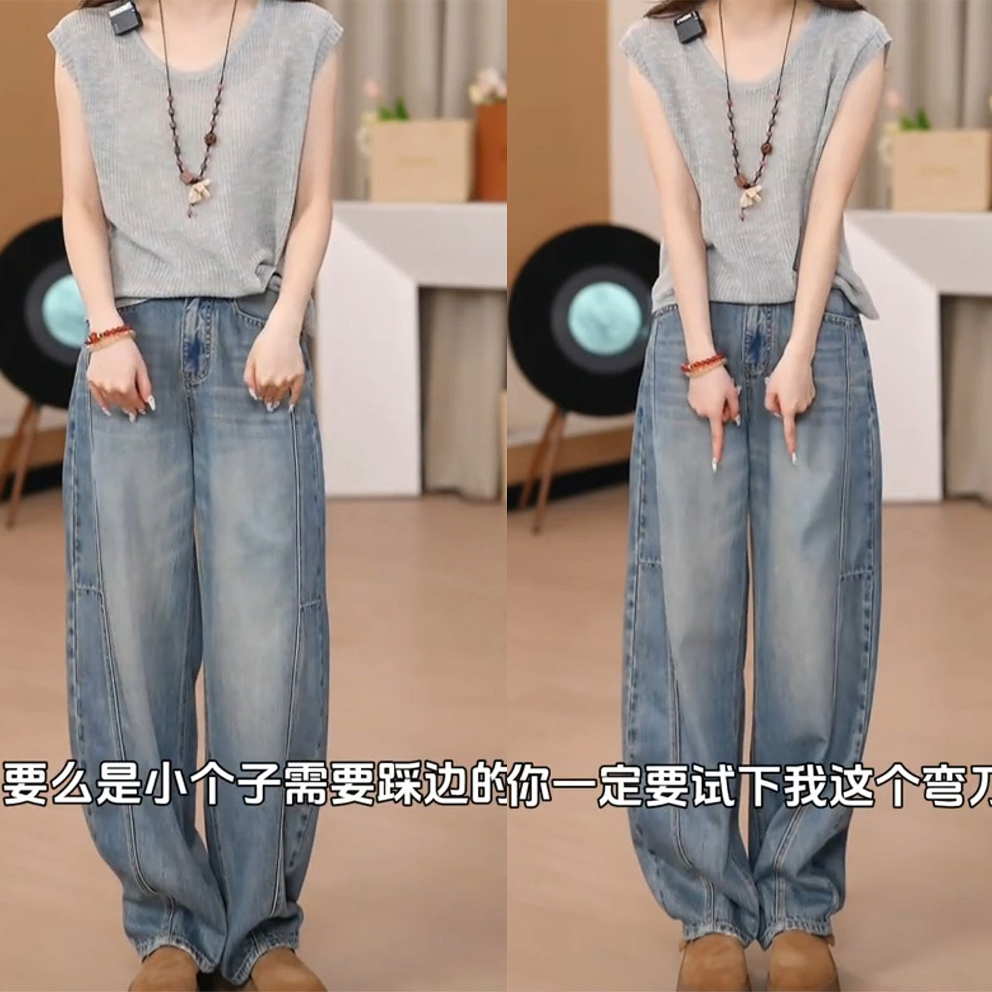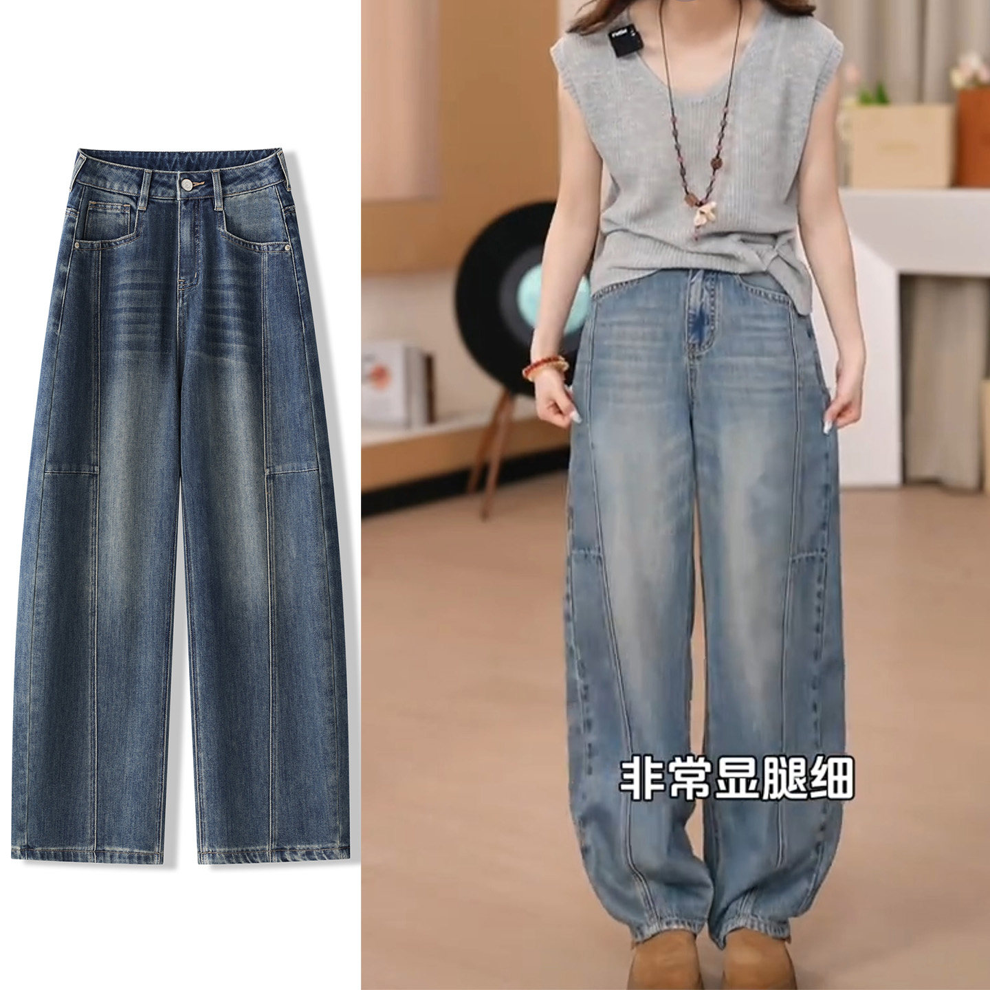 加绒高腰弯刀牛仔裤女2026春秋新款宽松显瘦小个子阔腿裤遮肉长裤