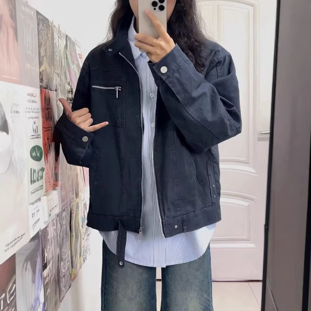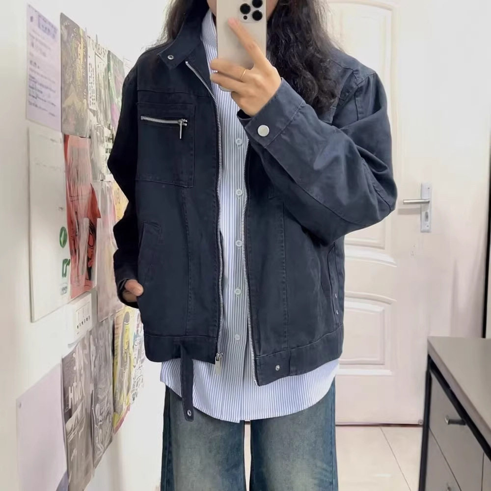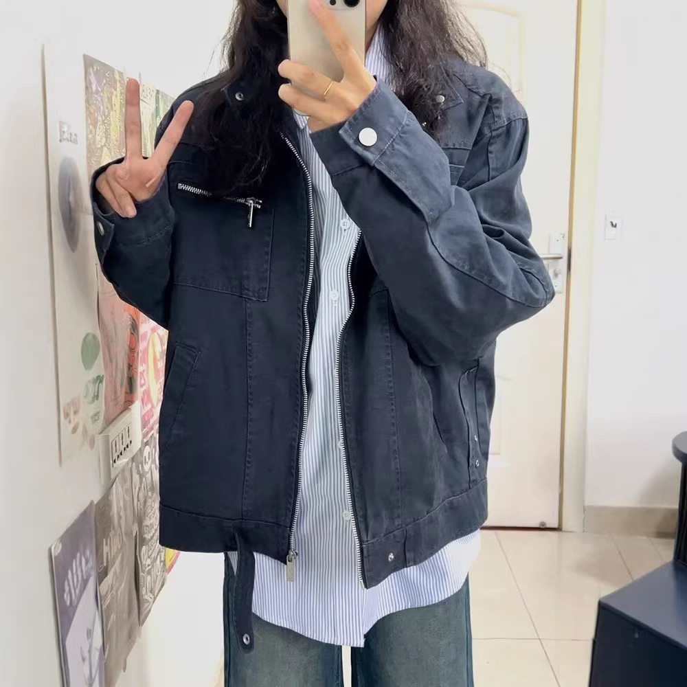 立领外套情侣2026新款春秋季美式复古百搭宽松男女款潮牌夹克上衣