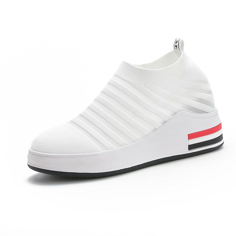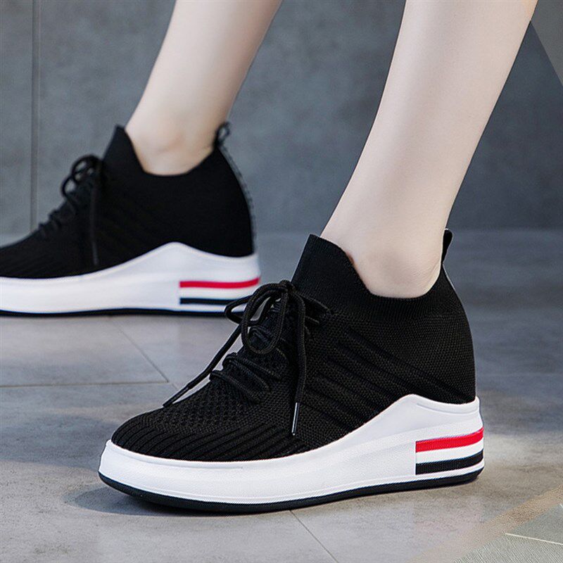 配裙子的小白鞋内增高女鞋8cm网面透I气一脚蹬休闲鞋坡跟夏天网鞋