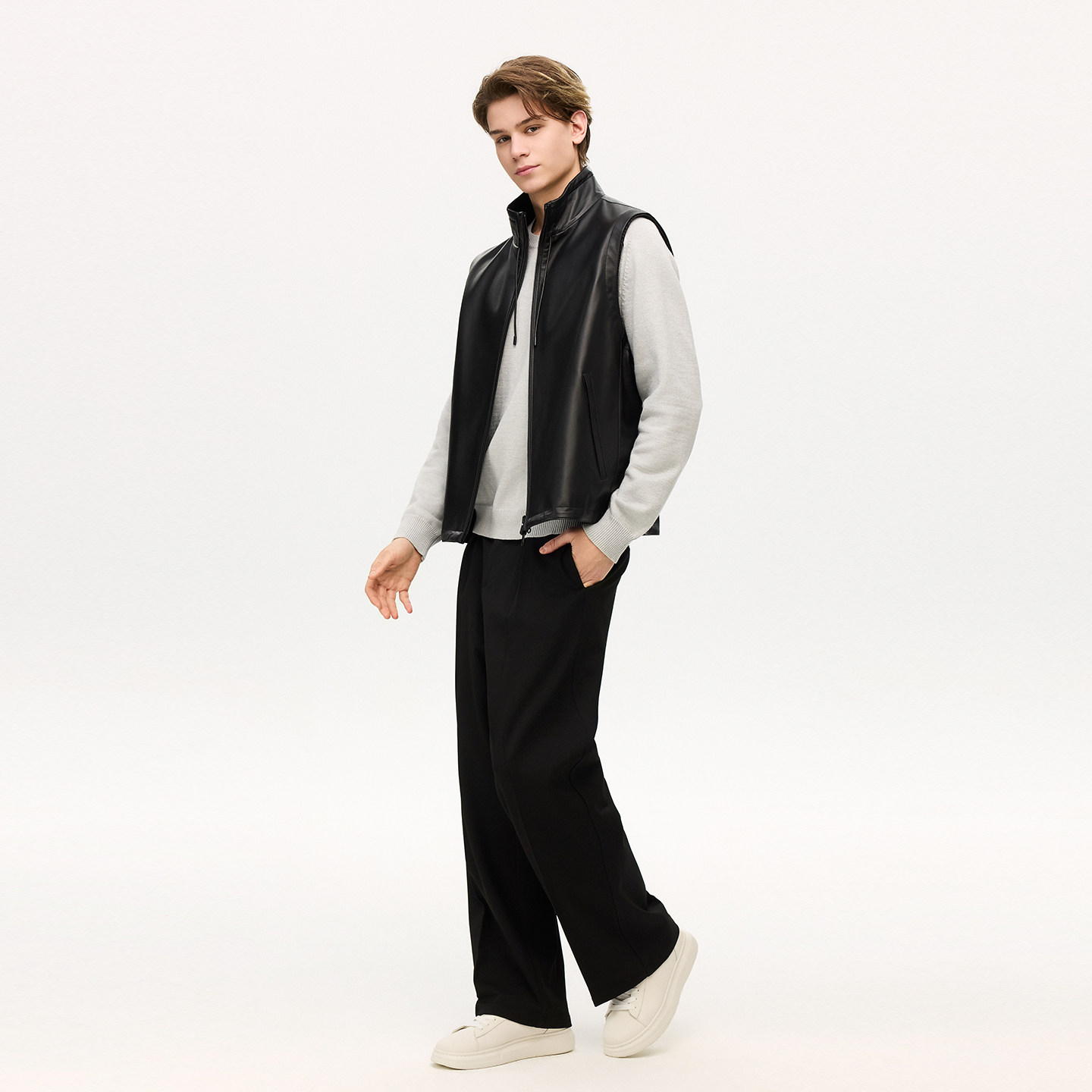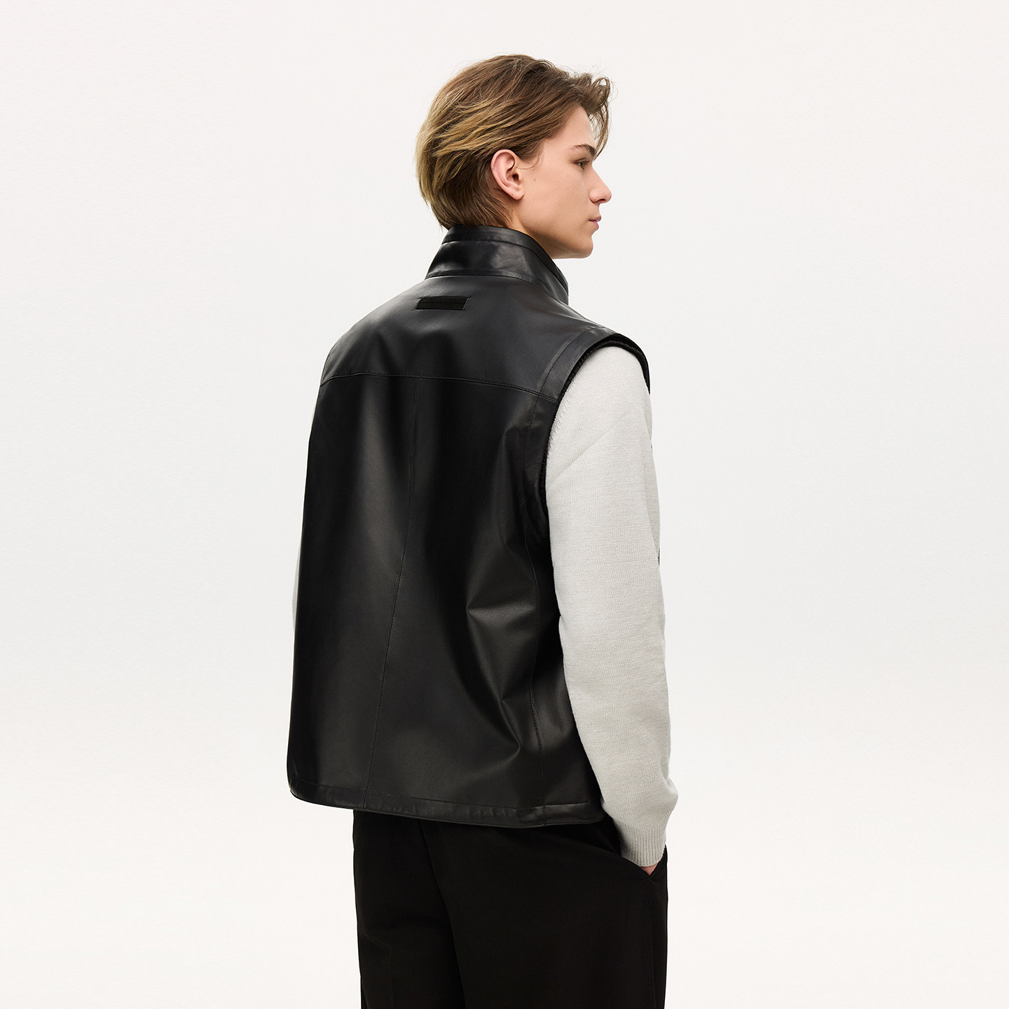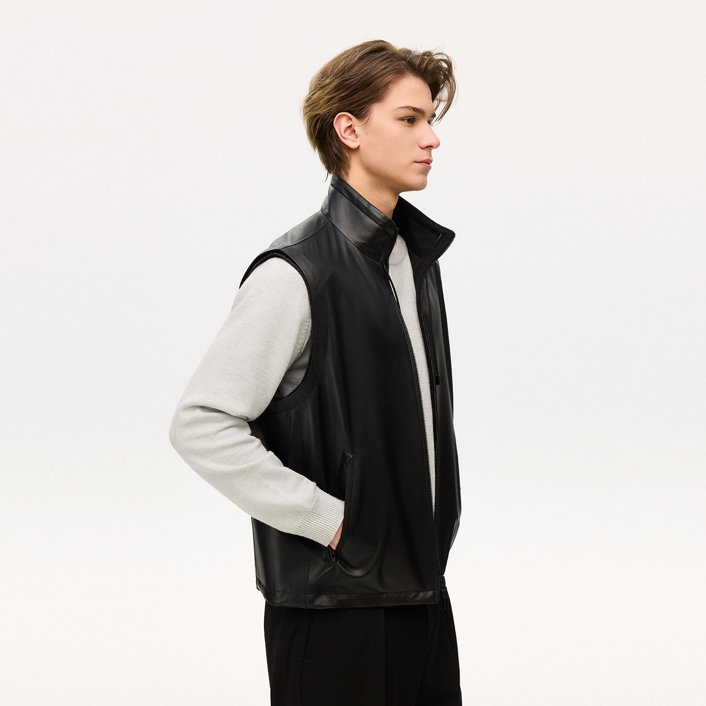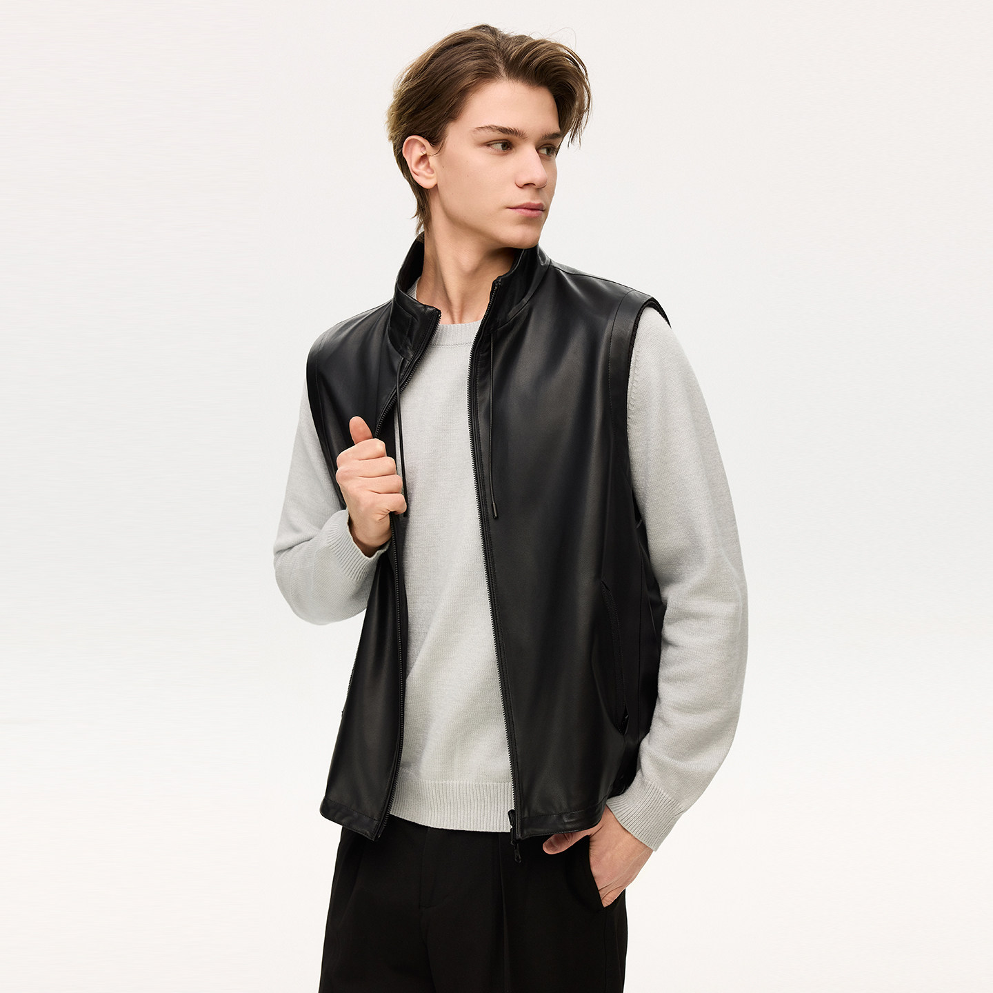 雪豹专柜同款真皮皮衣马甲外套男款2026春季新款休闲时尚皮夹克