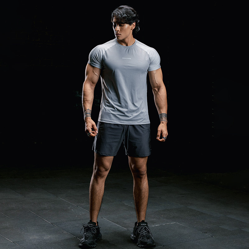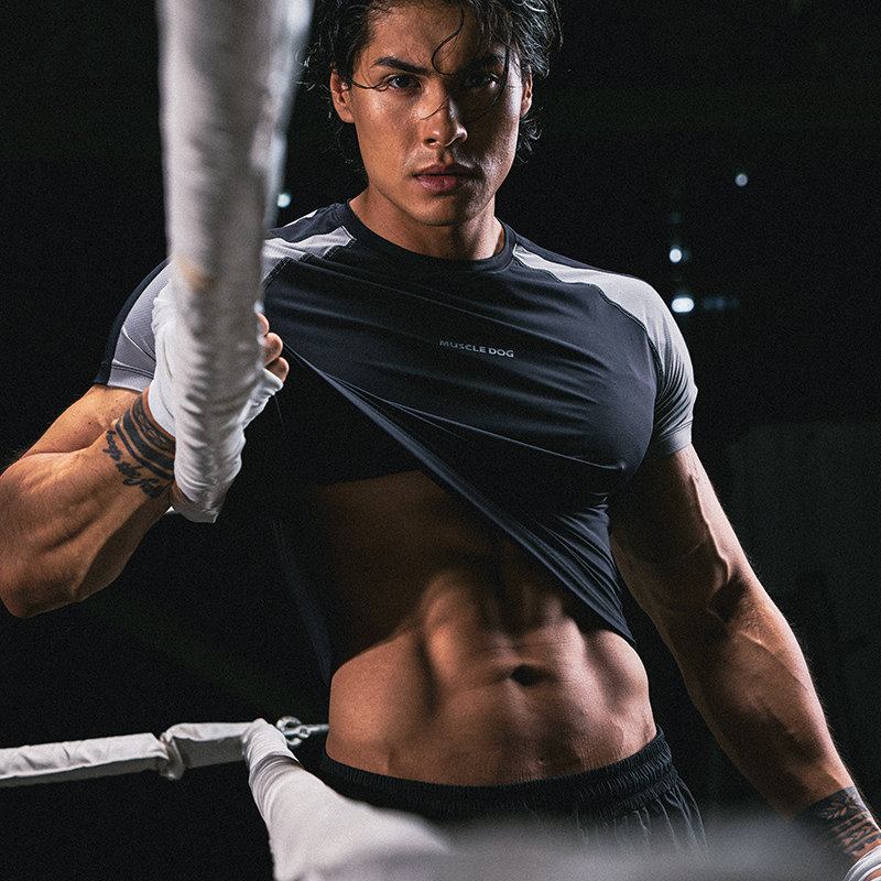 肌肉狗 弹力运动T恤男夏季凉感防晒插肩撞色短袖训练服健身上衣