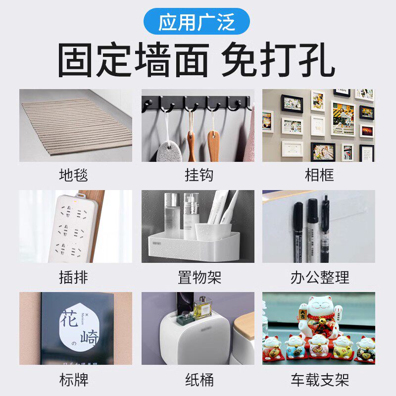 纳米双面胶高粘度强力固定墙面车用不留痕透明固定排插辅助粘胶无痕透明胶带魔力贴亚克力不留痕胶贴两面胶