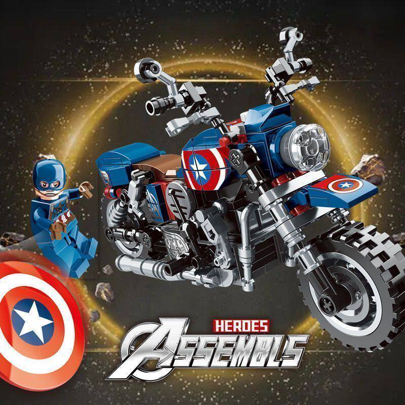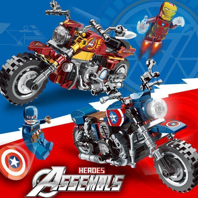 美国队长摩托车钢铁侠漫威复仇者联盟黑超级英雄拼装积木圣诞节